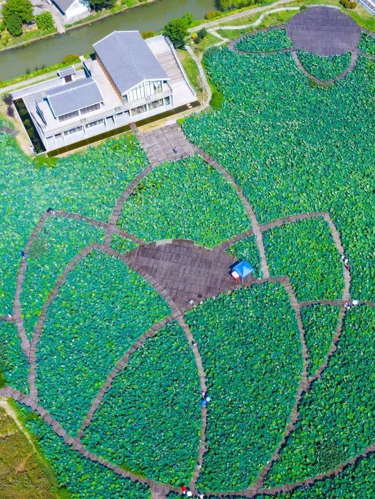 “藕遇”公园由原来的藕塘改造,占地面积约50亩。铺设了1700个木桩,木桩上建有523米的亲水木栈道,种植了约30种观赏性荷花和睡莲,栈道镶嵌在盛开的荷花海洋中,从高空俯瞰形成一朵绽放的“荷花”形状,蔚为壮观。