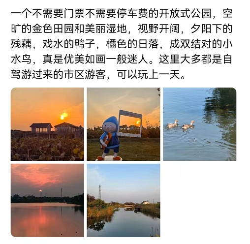 整个游船线路大概在半个小时左右,结束以后我们就可以上岸参观附近的民宿、尚品书院、藕遇公园等景点。因为现在正好是水稻收割的季节,所以我们计划开展农耕体验活动,游客可以亲手收割水稻,然后做上一份香糯可口的糯米饭,一边欣赏风景,一边享受美食。