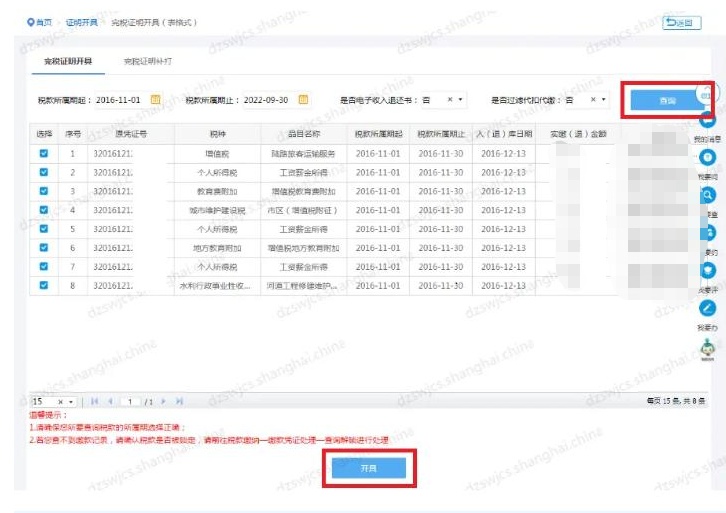 第二步:勾选需要开具的凭证,确认后点击“开具”,下载完税证明即可。