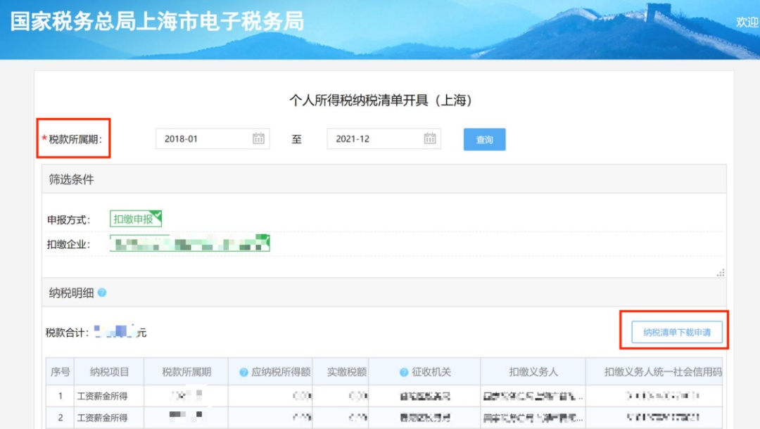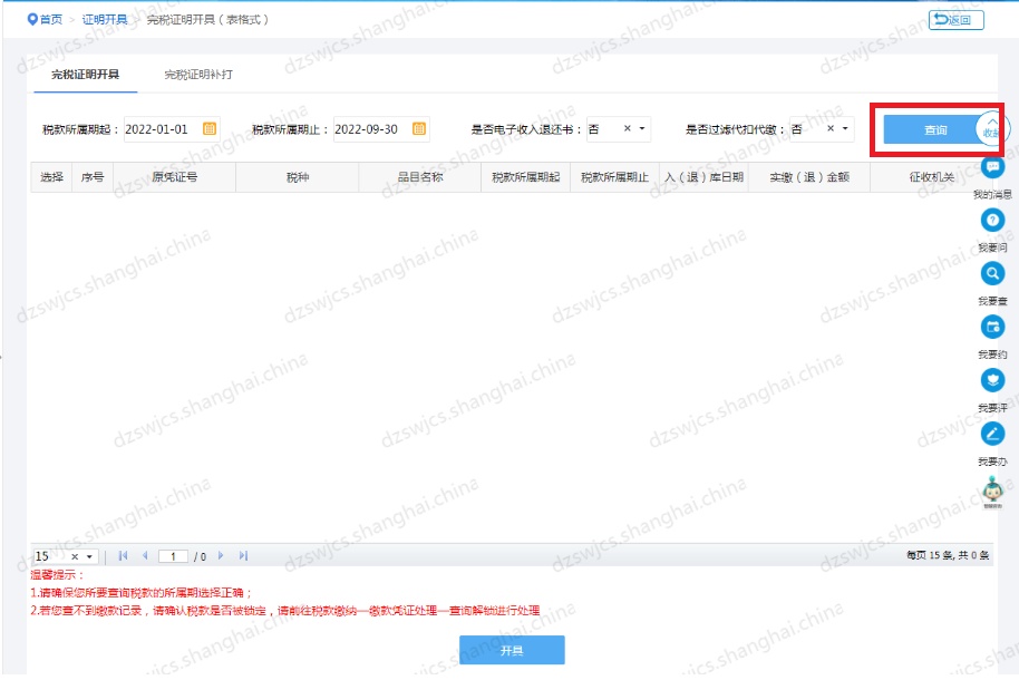 第一步:纳税人选择税款所属期等,点击“查询”。