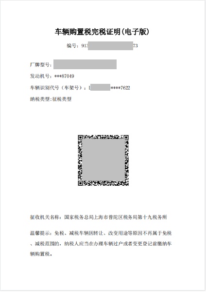 纳税人完成车辆购置税申报并缴款成功,可通过电子税务局“证明信息查询”查询和打印车辆购置税完税证明(电子版)。
