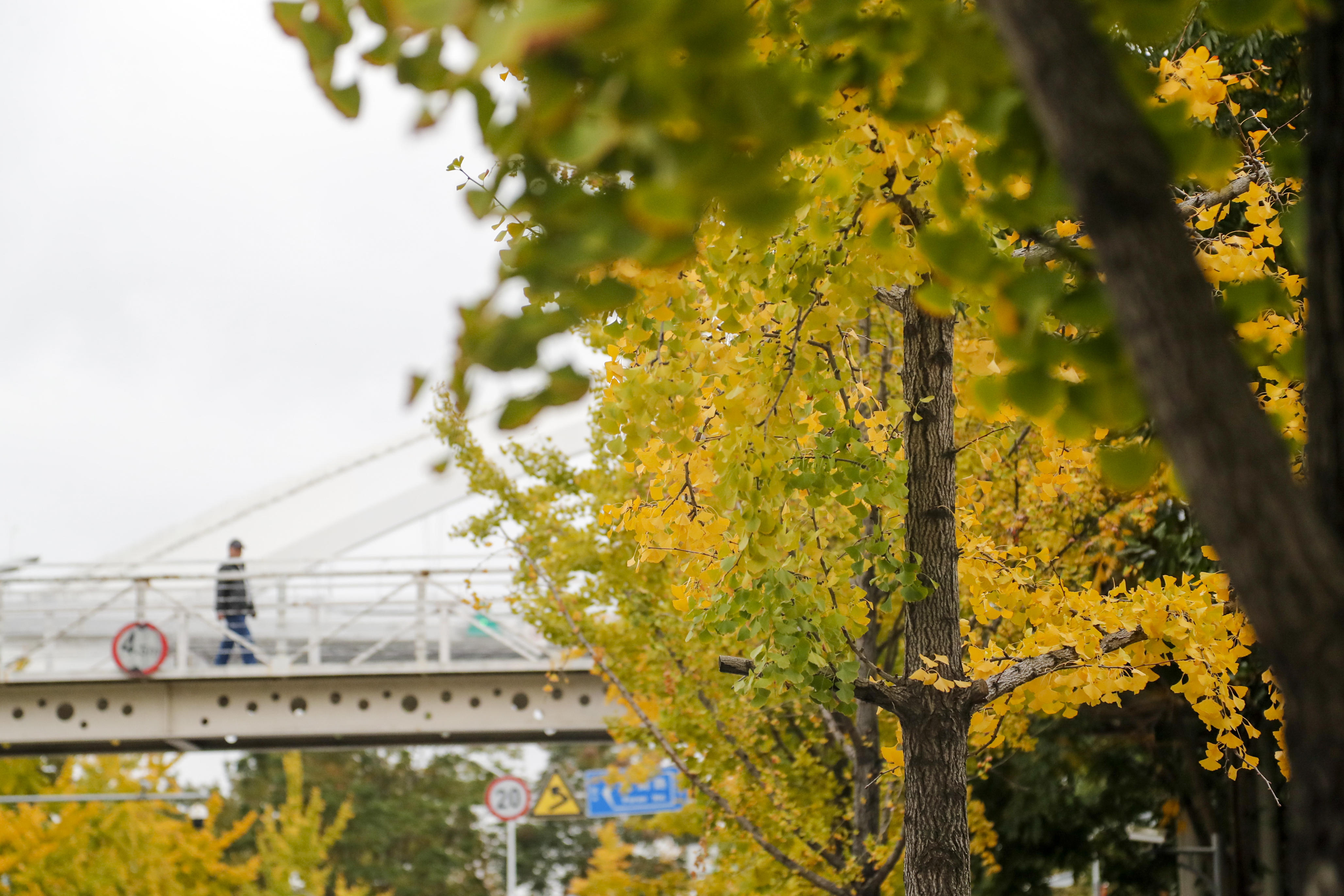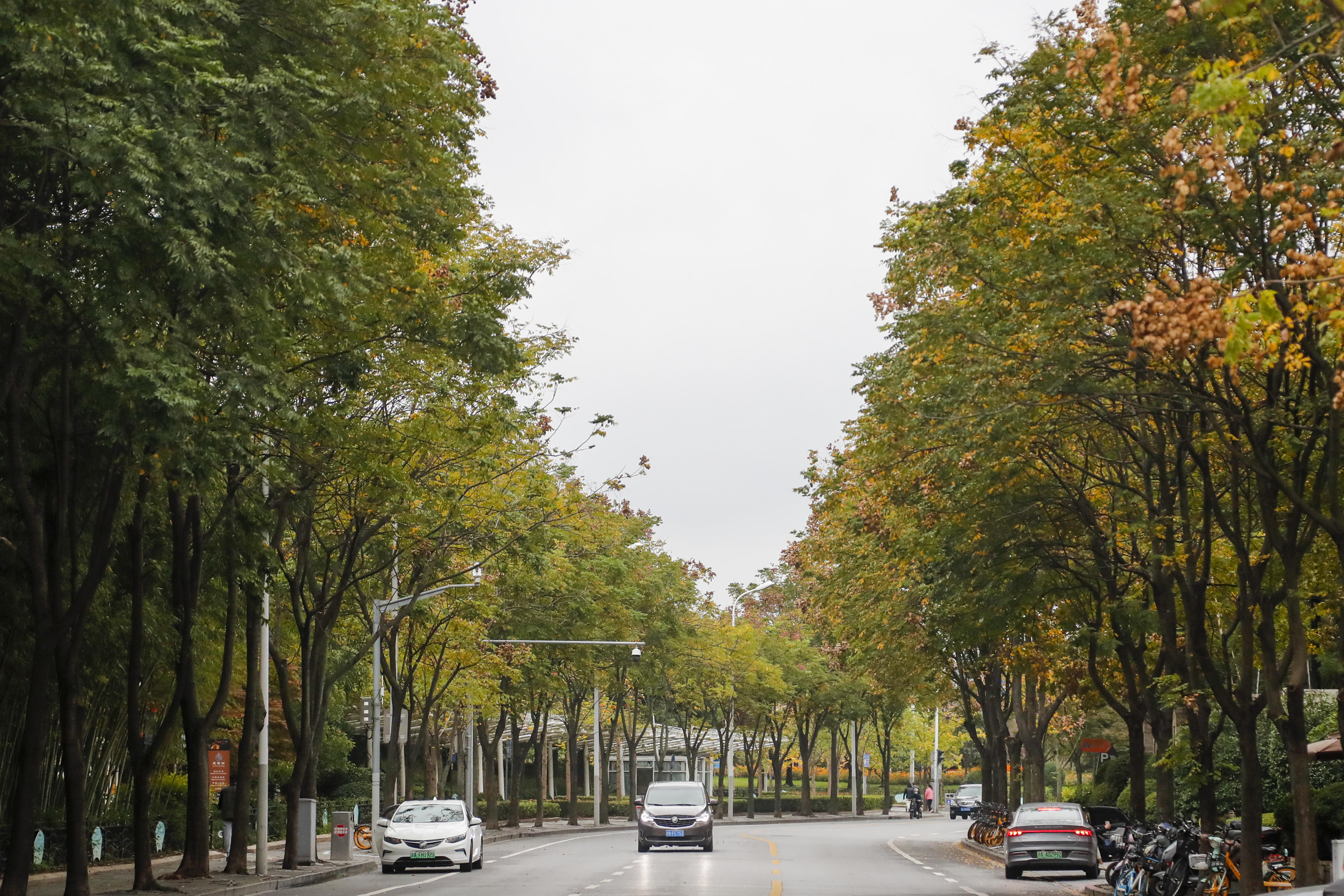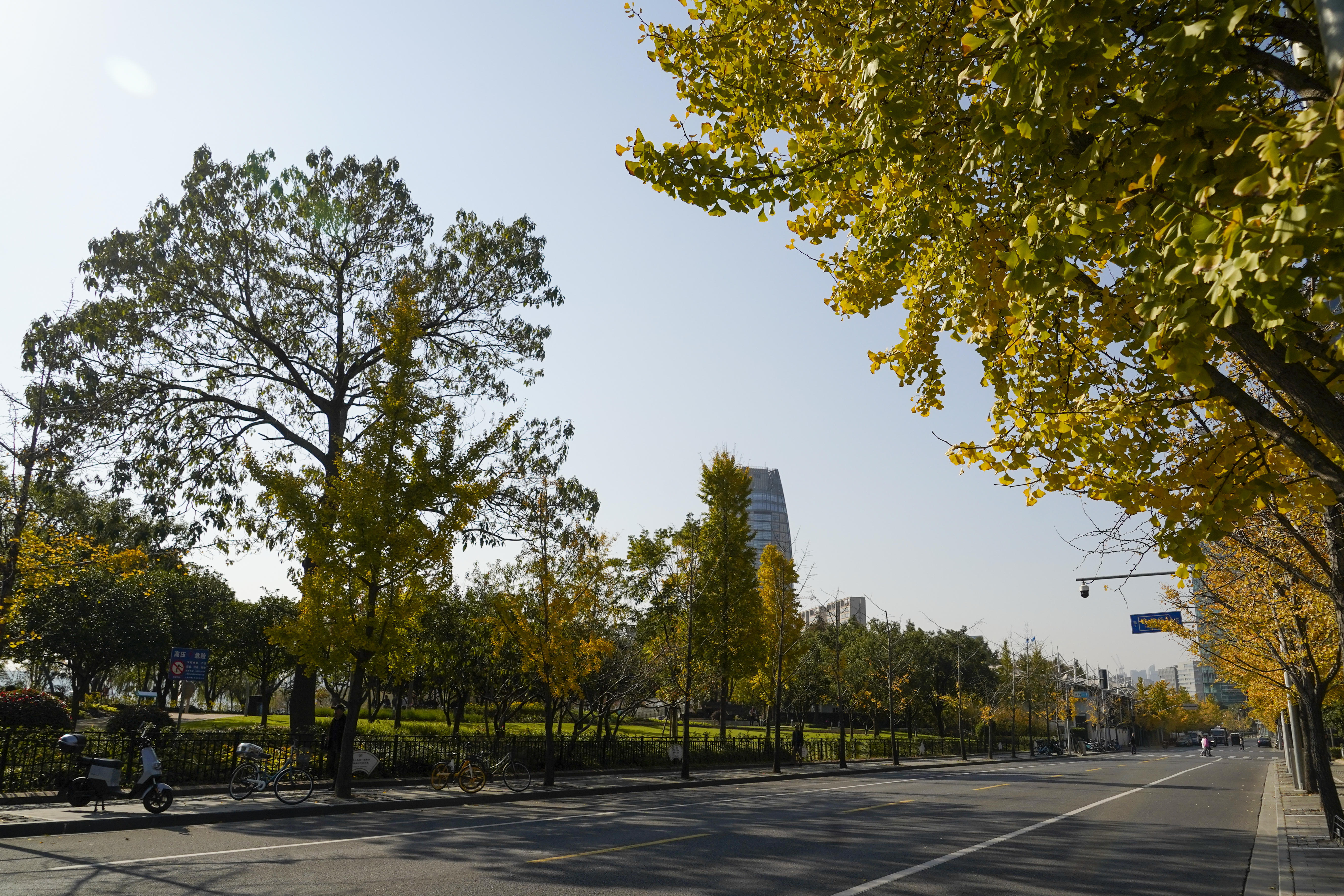江滨路两侧种植着银杏,这个季节的江滨路,一片片银杏叶随风摇曳,抬头皆是风景。