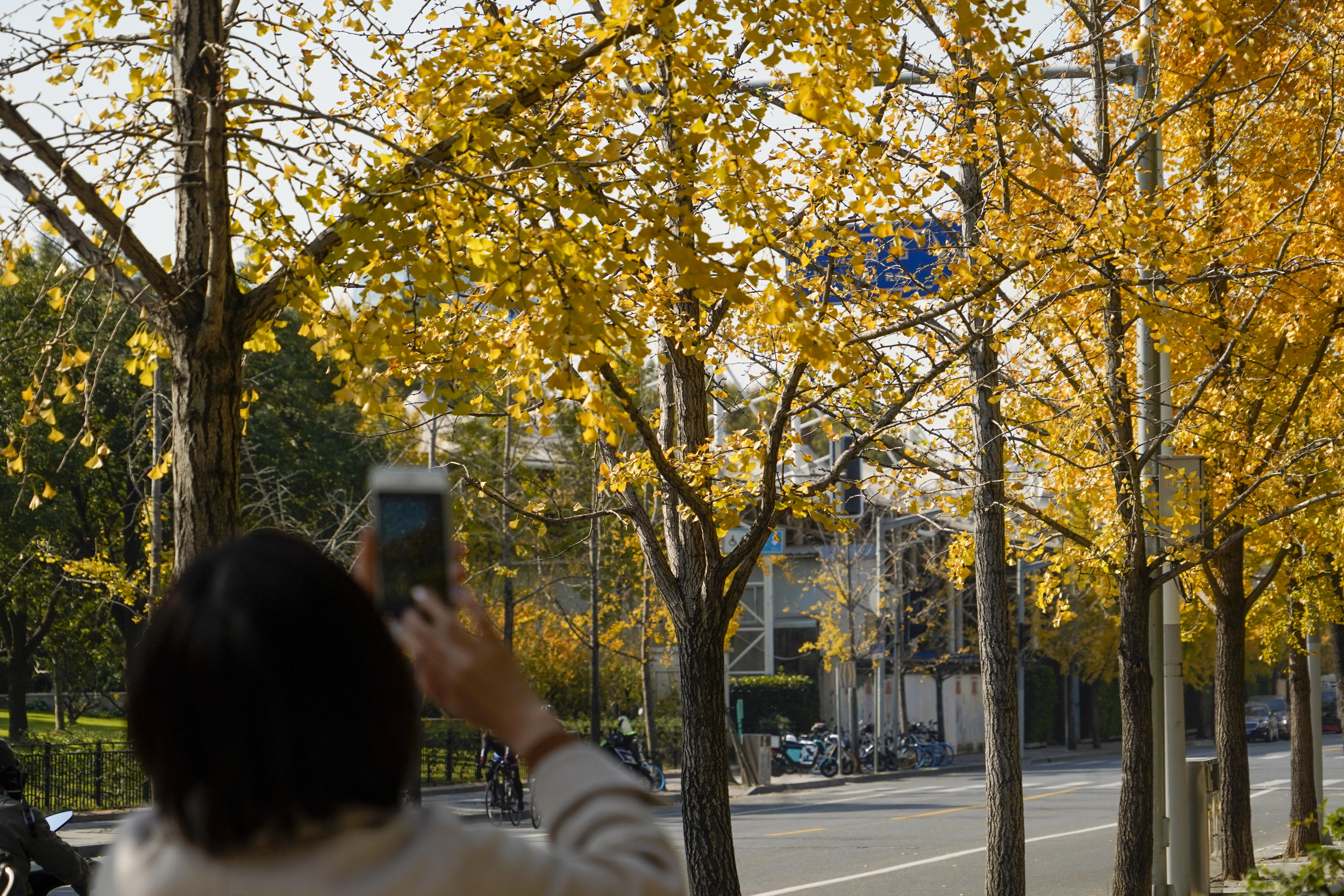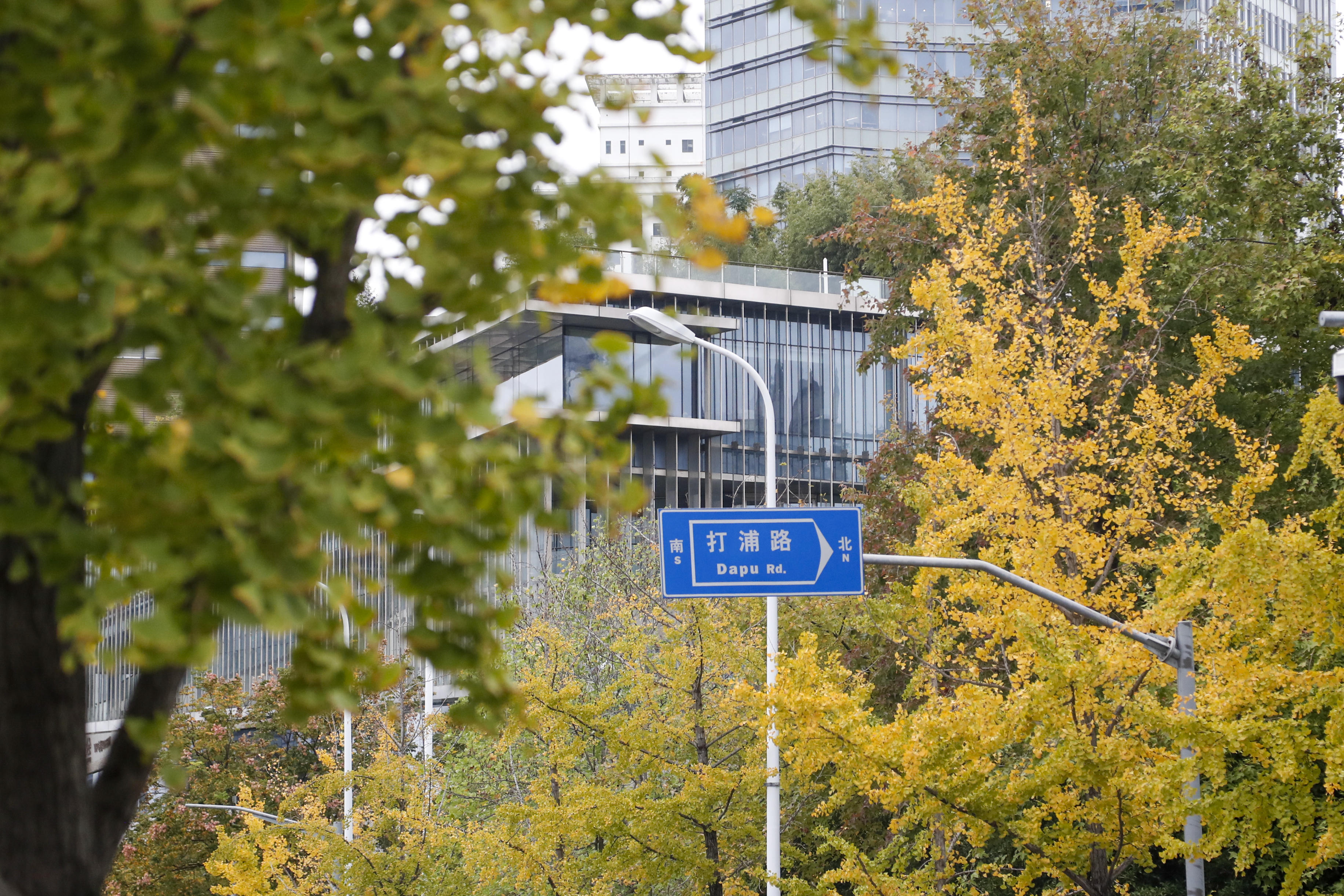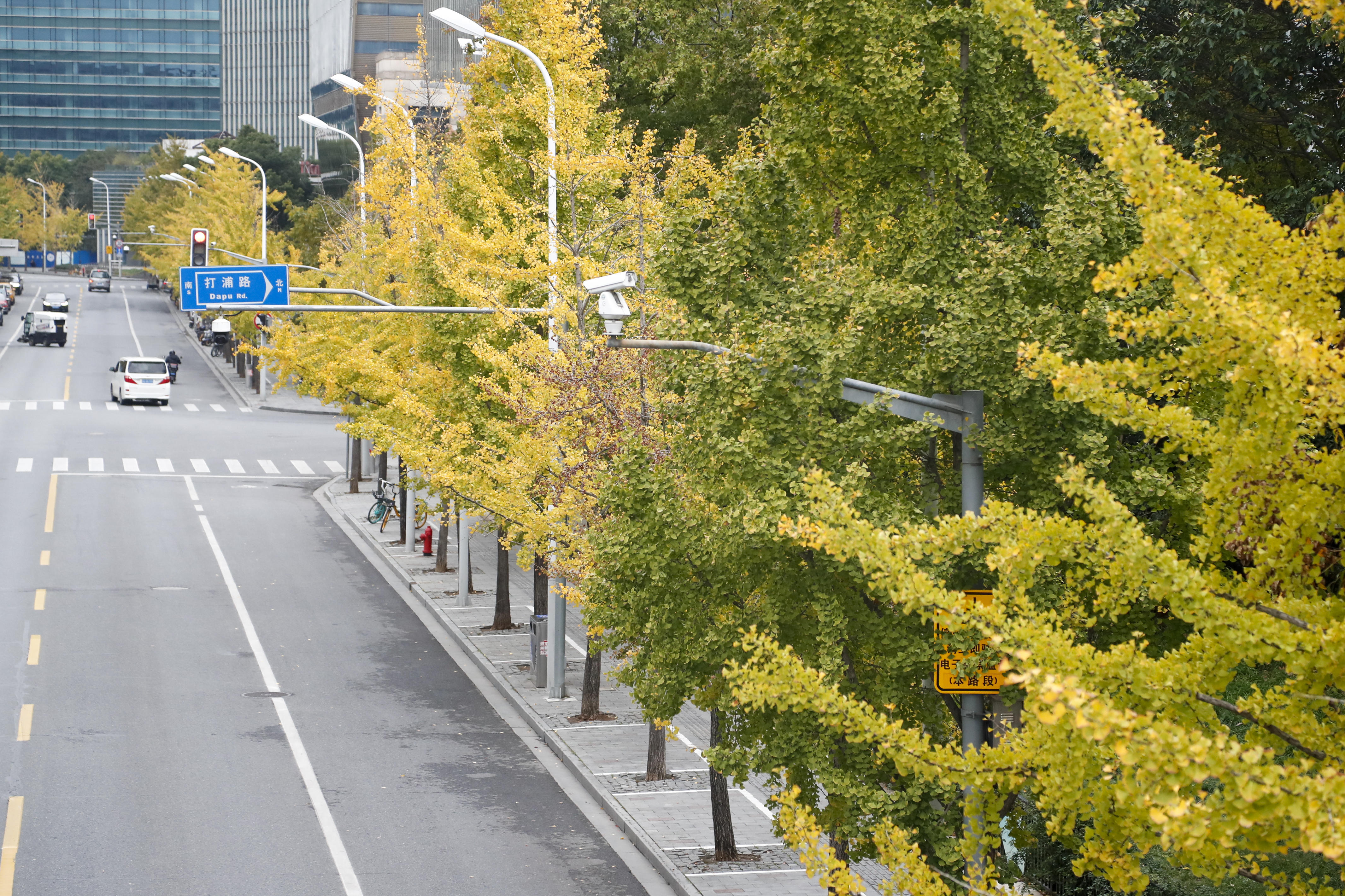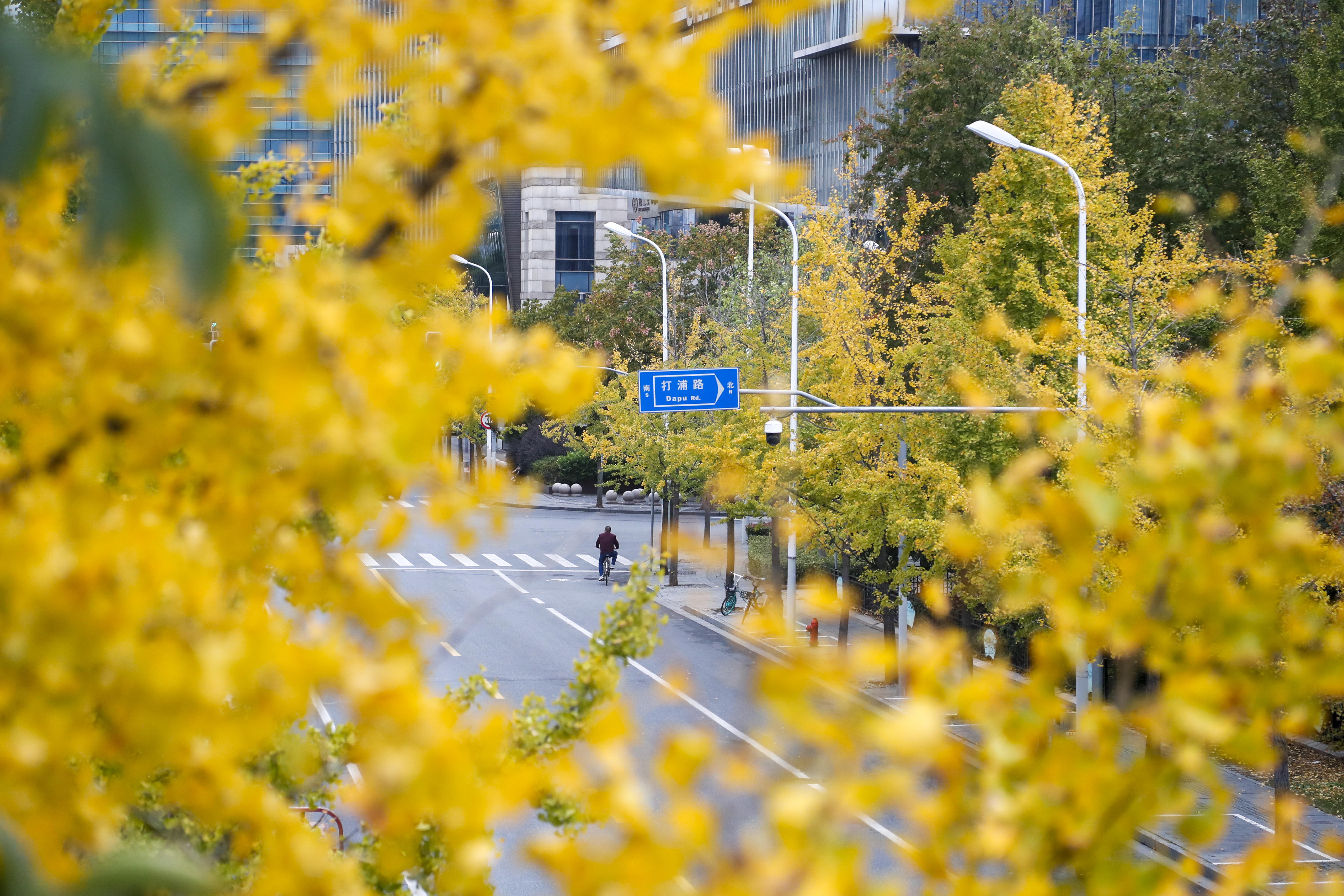 随着气温下降,申城秋意渐浓,银杏叶也逐渐染上了金黄色,在暖暖的阳光照射下,成为只属于秋天的限定色。