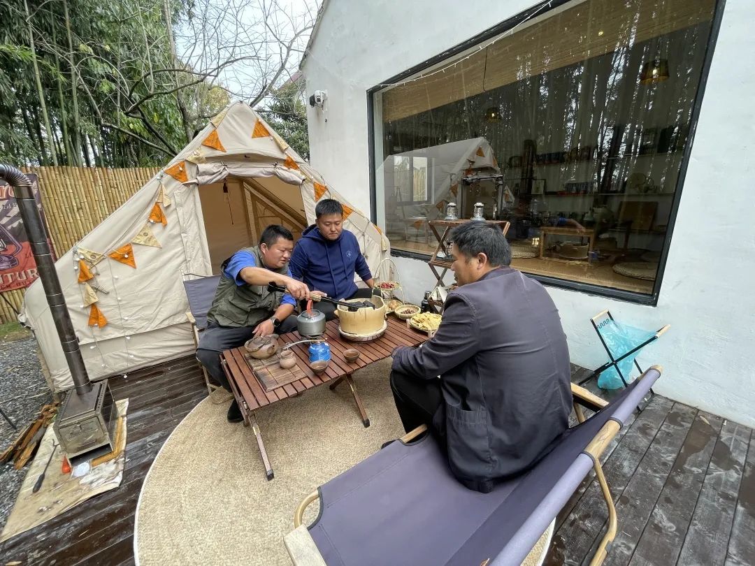 带上美好的心情,与家人、好友、同事们来到新落成的青塘小院,全球旅拍摄影师周鼎一年前来到村里,改造了这家露营风格的乡村轰趴小院,高颜值大帐篷、天幕、户外桌椅一应俱全,在与主人围炉煮茶间聊聊旅行与摄影。