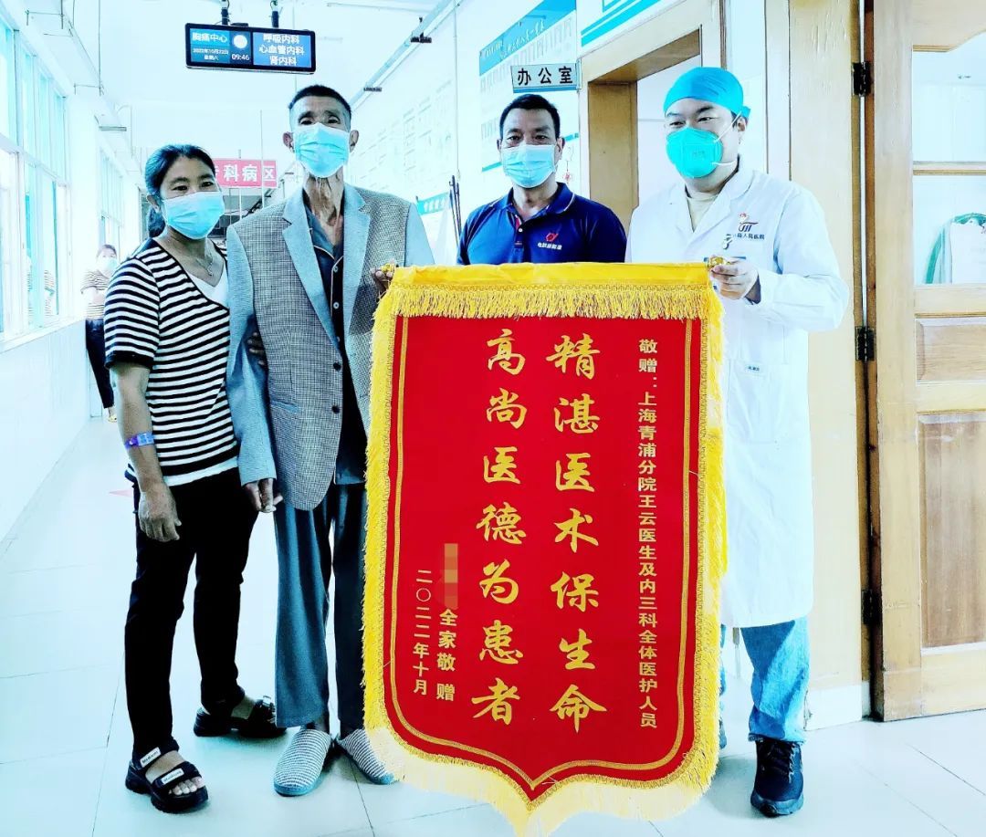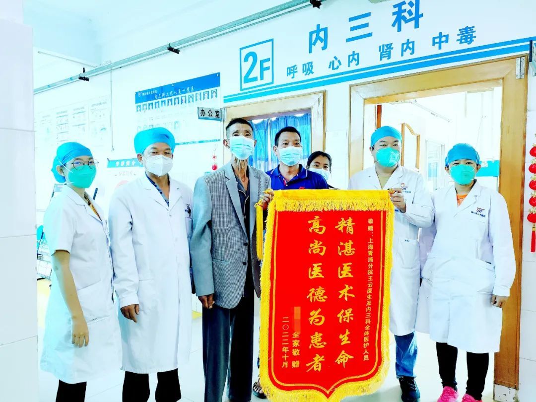 王云老师每天都要查看患者情况,结合患者的病情调整治疗方案。在医护人员的悉心照料下,患者从入院时的病危状态,以每天可见好转趋势恢复,呼吸逐渐平稳,进食状况明显改善,大小便逐渐恢复正常,精神也一天比一天好,到出院时已可以正常行走。及时的抢救措施让患者和家属们真正感受到了上海陇川医生王云和科室医护人员精湛的急救技术和无私的付出,体现了对生命负责的强烈使命感,家属表示:“人的生命很宝贵,只有一次。但是王云医生和县医院内三科的医护人员却给了家人第二次生命,救命之恩无以言表,只有送一面锦旗表达感谢”。