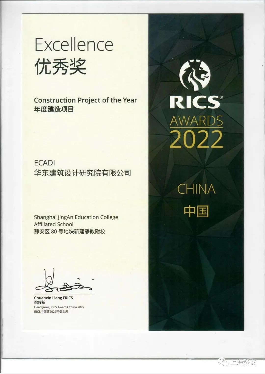 近日,由华东建筑设计研究院有限公司设计的静教院附校江宁校区新校舍荣获了2022年“RICS中国”年度建造项目优秀奖。(2022年RICS中国峰会及“RICS Awards China 2022”颁奖典礼由英国皇家特许测量师学会(RICS)主办,RICS Awards被公认为房地产和建筑行业“奥斯卡”,在全球行业内极具影响力。)