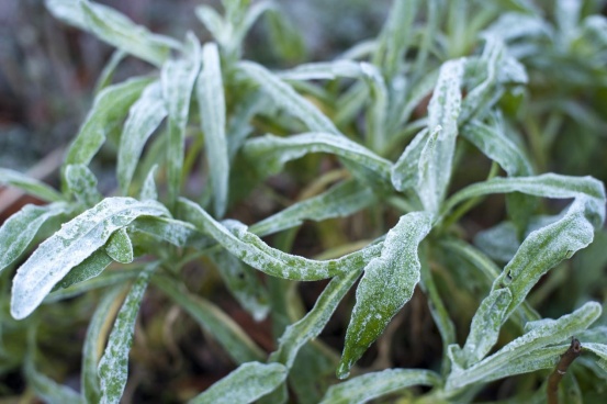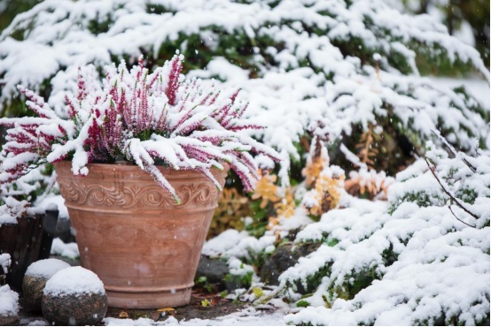 3.防冻,室外过冬植物一定要注意防止盆土冻结,盆土冻结后,一是会损伤根系,二是水分被冻结植物无法吸收,最后导致植物干死。若来日气温上升,则问题不大;若冻结时间太长,则建议搬入室内化冻。此外,在土壤表面铺上细沙、稻草等也能防止土壤冻结以及落霜。在冻结后浇灌常温水(约10℃左右)也能缓解这一情况。