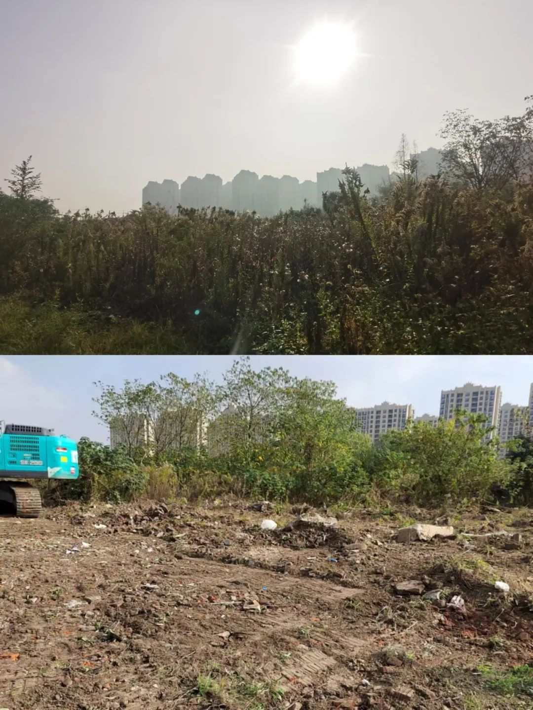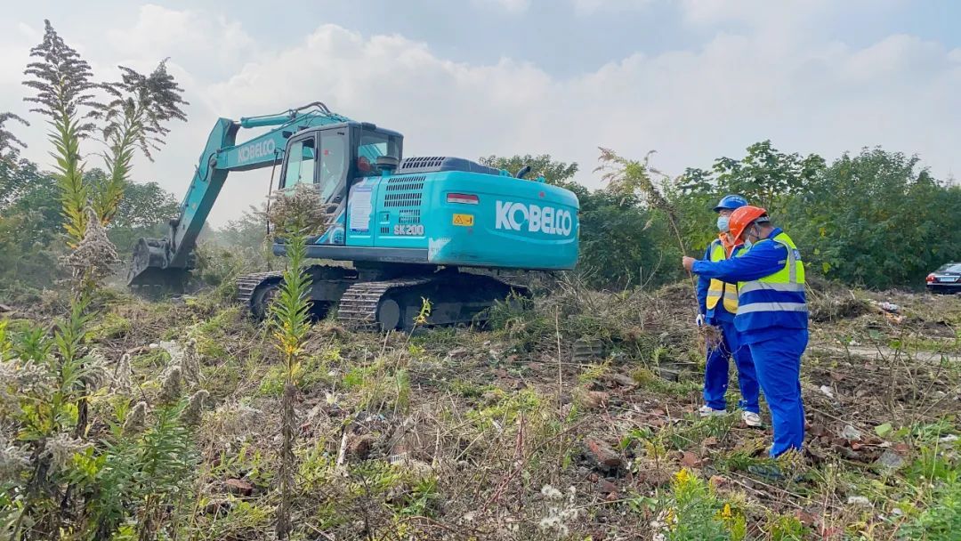 清除前,友爱村及项目部负责人对周边环境进行了调研,发现“加拿大一枝黄花”确实有着强悍的生存和蔓延能力,其分布范围非常广泛,光靠人力清除,耗时耗力,难度很大,项目部领导当即决定,租赁一台挖掘机,合理调配人机资源,对分布区域进行植株的清理。