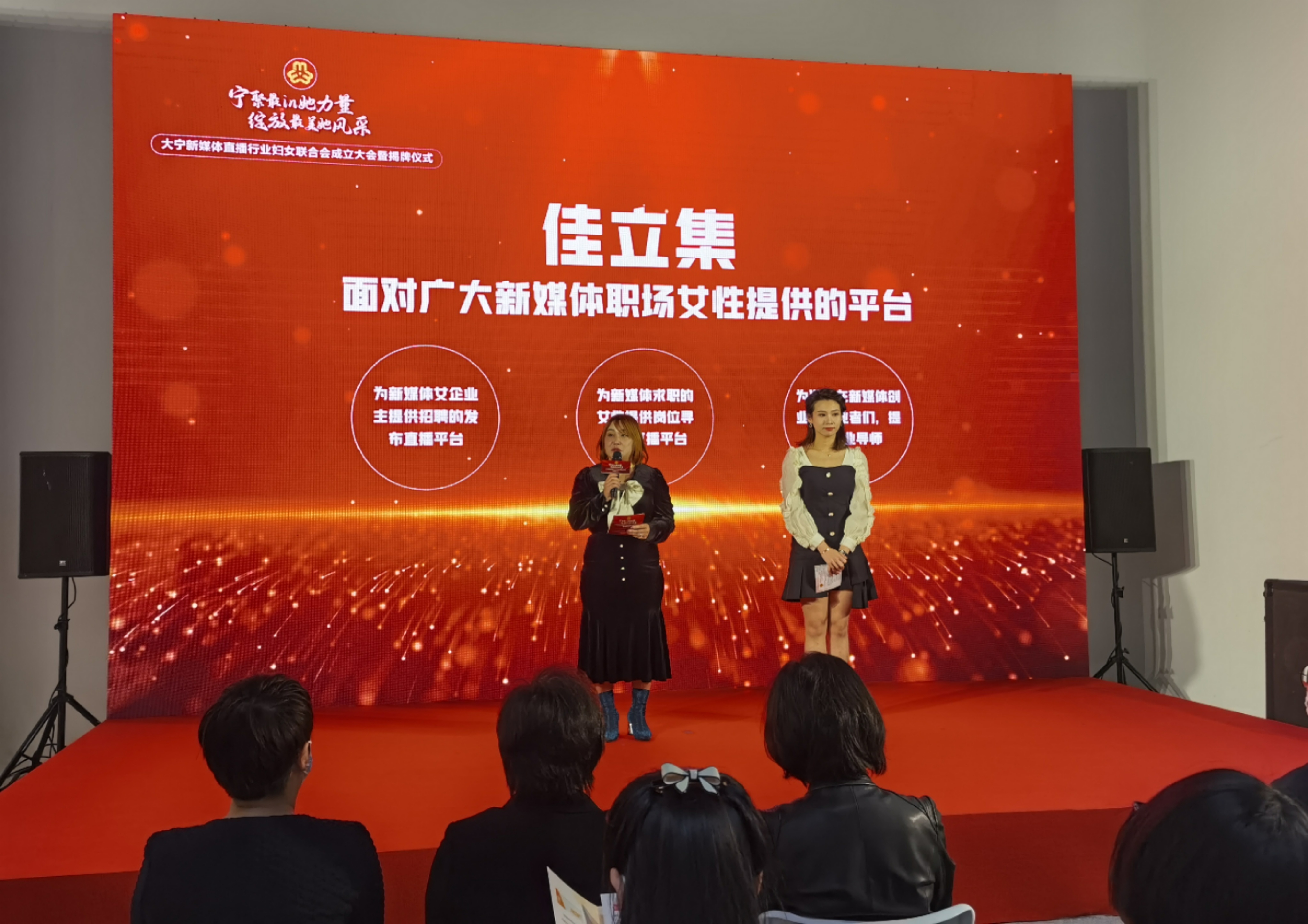 值得一提的是,大宁新媒体直播行业妇联结合自身特点,现场面向广大新媒体职场女性发布了“佳立集”项目。这一项目旨在为新媒体行业女企业主提供招聘信息发布的线上直播平台的同时,为希望在新媒体行业求职的女性,提供精准匹配岗位的直播平台。活动中还成立了直播行业女性创业导师团,为准备在新媒体行业的创业者提供创业指导服务。