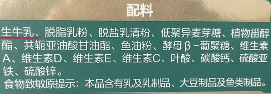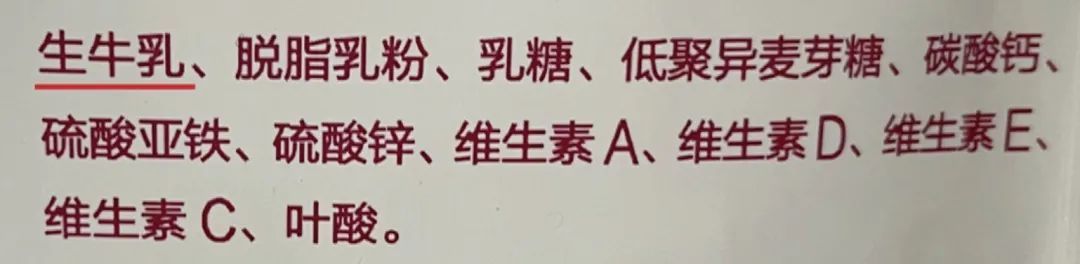 2. 看配料表,排名第一的最好是生牛乳;