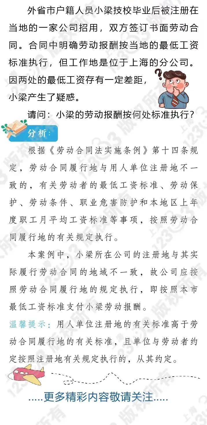 劳动合同履行地与公司注册地不一致,劳动报酬按何处标准执行?