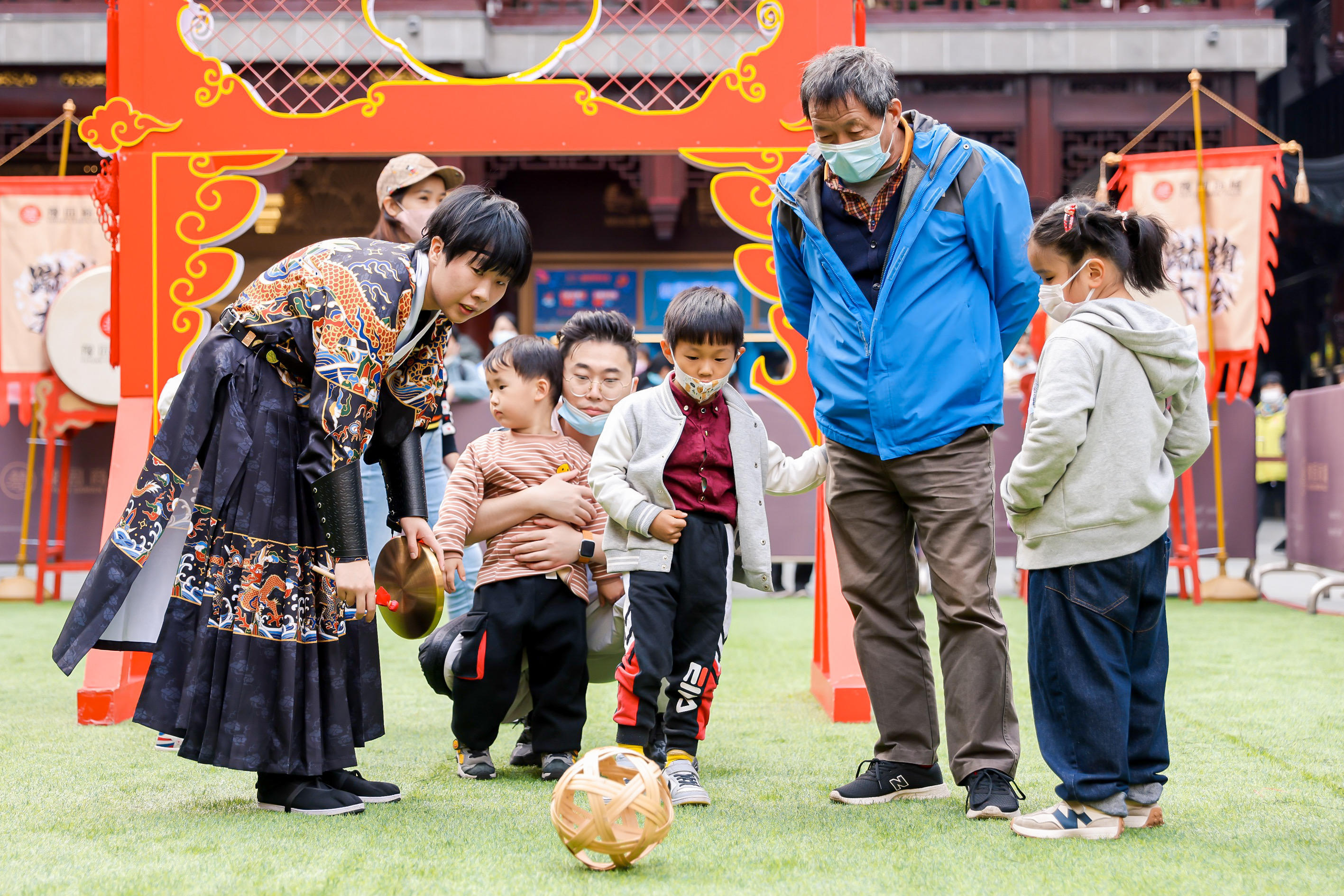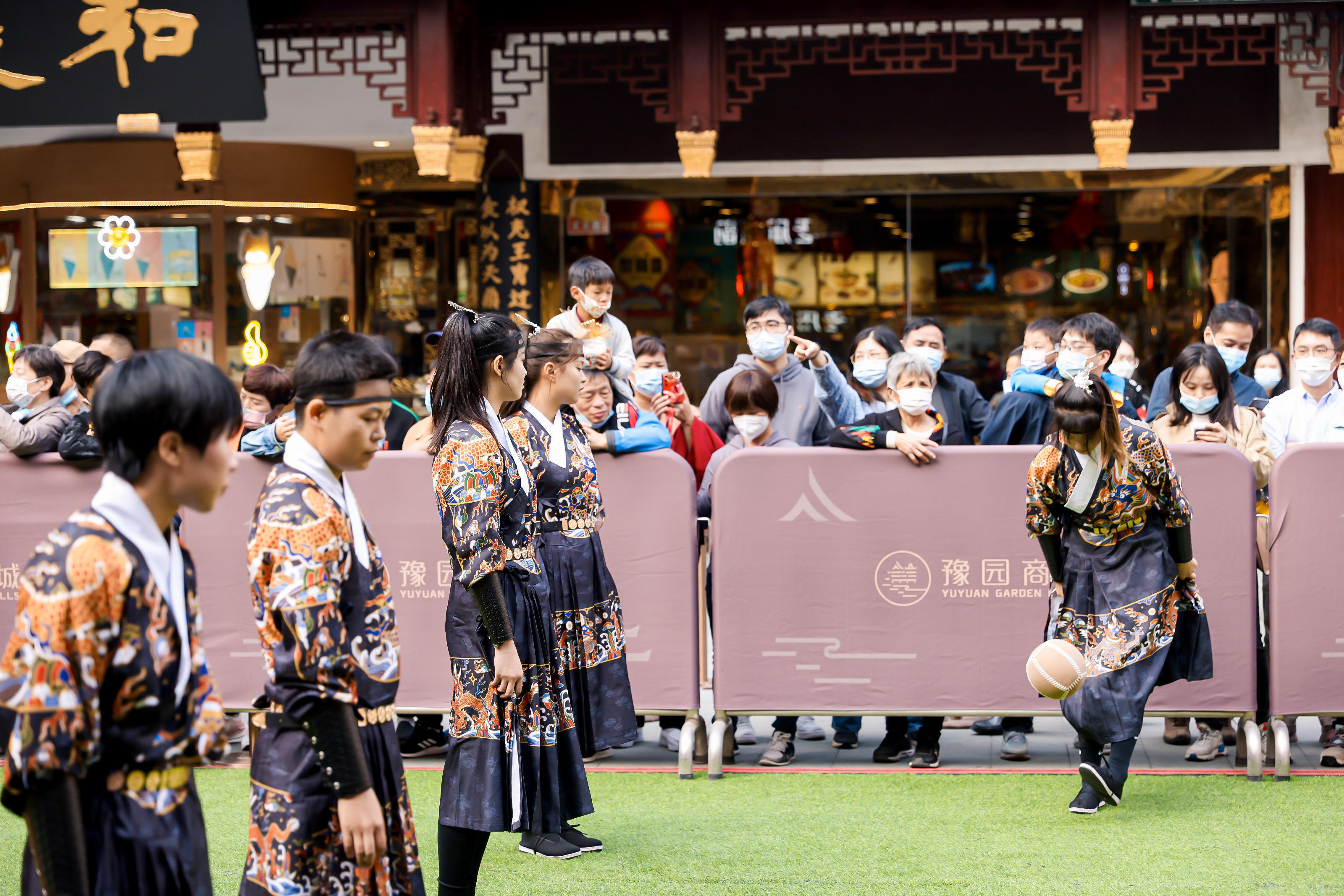 在豫园商城中心广场,于本周末和下周末连续上演的“蹴鞠大会”同样精彩纷呈。说到蹴鞠,这项起源于战国时期的活动,在2004年被国际足联正式确认为是世界足球运动的起源。