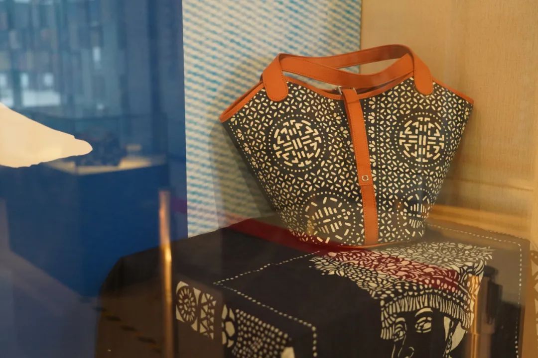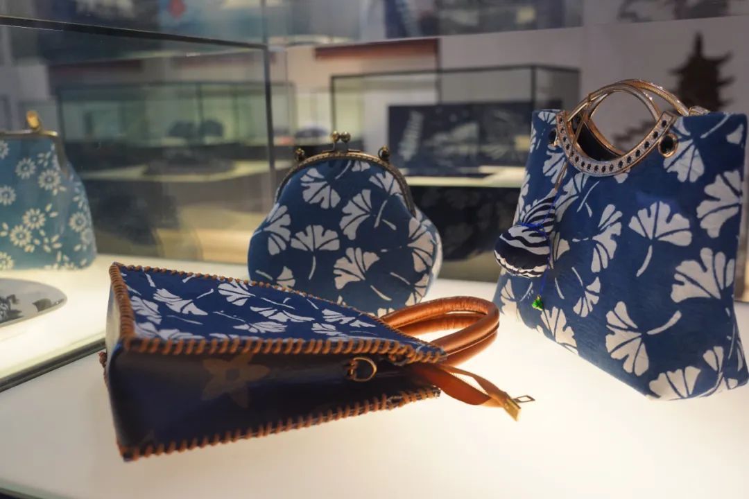 近日,“染美嘉定”玉成蓝药斑布创新展在嘉定区文化馆非遗展厅举办。记者在展台上看到,药斑布纹样或有“汽车城”的标志元素,或结合金属、皮革等元素,被制成了不同款式的背包、零食收纳袋、布艺装裱画等物品,展现了传统与现代的融合。