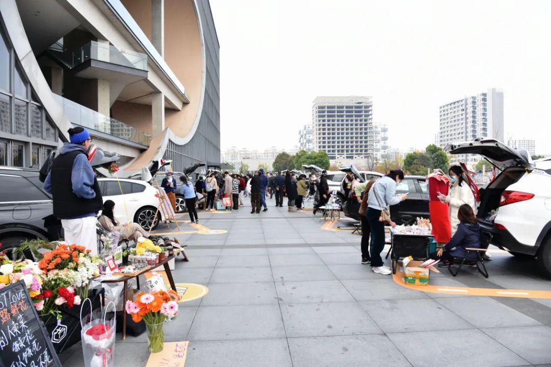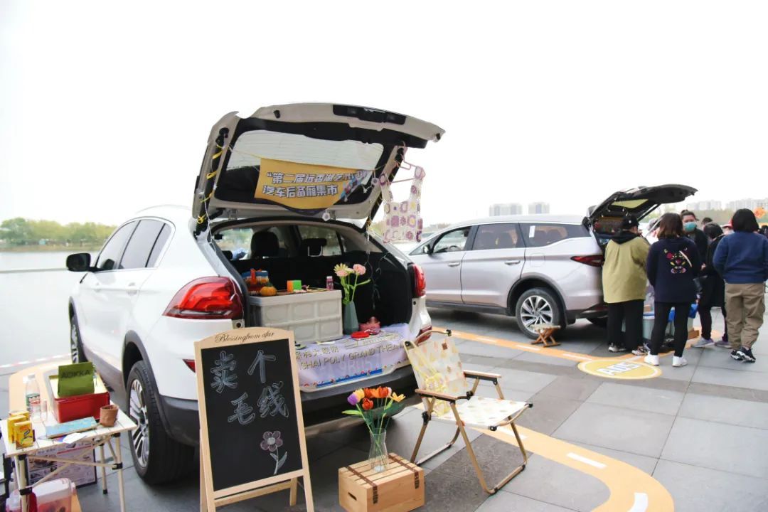 鲜花花束、精致胸针、手工布艺、百科图书……种类丰富的“花样”后备箱摊位在水景广场“支棱”了起来。各类精巧的商品整齐地摆放在后备箱里,每个摊位前都颇有人气。