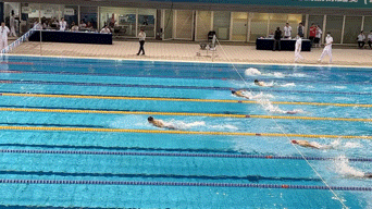 男子F组100米仰泳,代表虹口出战的徐子昊获得一枚银牌。