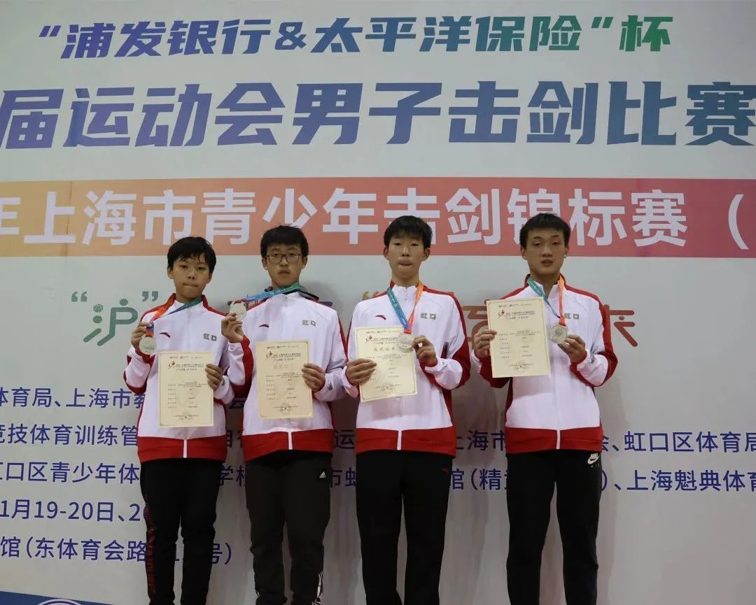 陈峻霖还和杜玉珏、王照临、陈羿嘉组队,为虹口摘得男子C组花剑团体亚军。