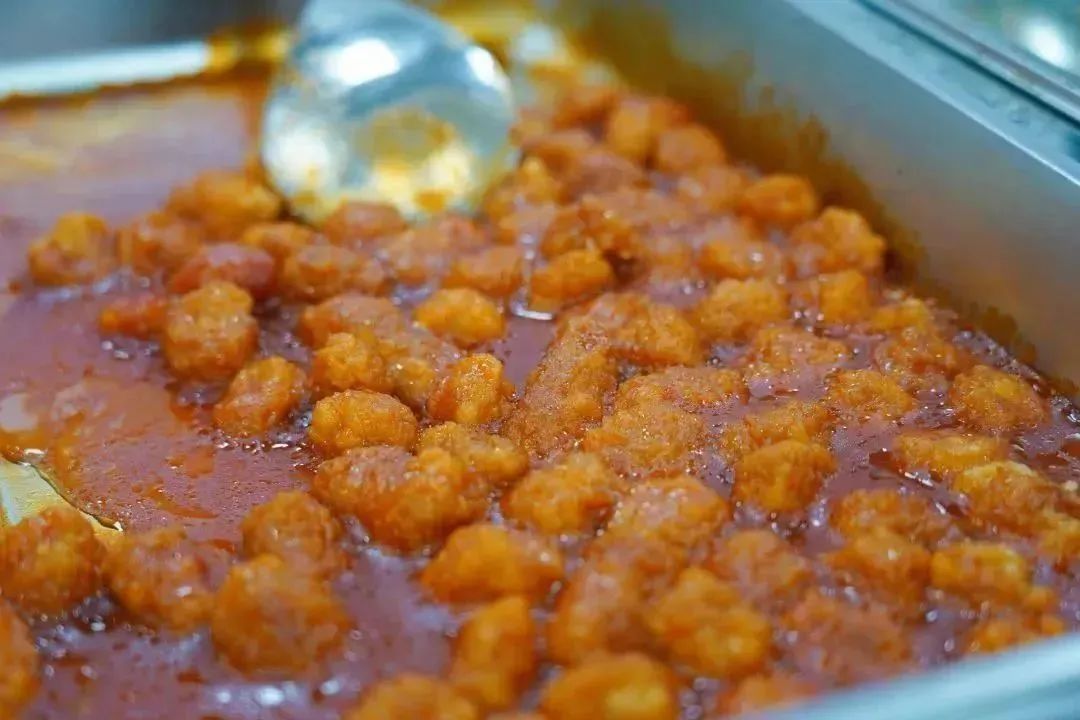 新升级的食堂注重营养均衡和口味偏好,20余种荤素搭配、色香味俱全的菜品冒着热气,让人垂涎欲滴,本帮菜面筋糟肉成为老主顾们心中的“嗲味”,冬季即将上新的三鲜煲让大家期待值拉满。