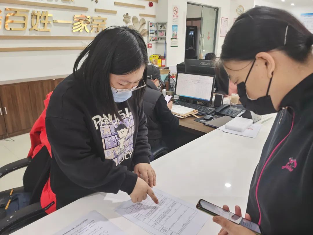 今天(11月28日)上午9点,记者在安亭镇迎春社区居委会看到,办事大厅不时有居民前来咨询跨省通勤人员白名单申请问题,并现场填写申请表。王阿姨是代她儿子来领取申请表的,工作人员一边将申请表交到王阿姨手中,一边提醒其填表的注意事项。