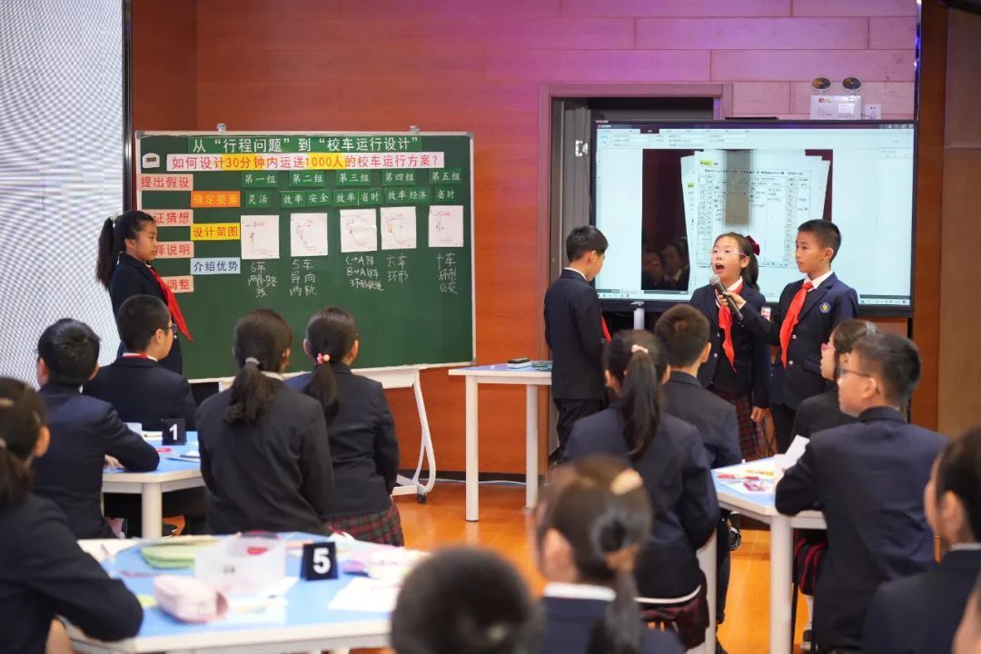 在“从行程问题到‘校车运行设计’”这堂数学课上,学生们除了要思考如何在30分钟内运送完1000名学生到校,还要考虑校车维护成本、乘坐舒适度、环保问题等现实因素。