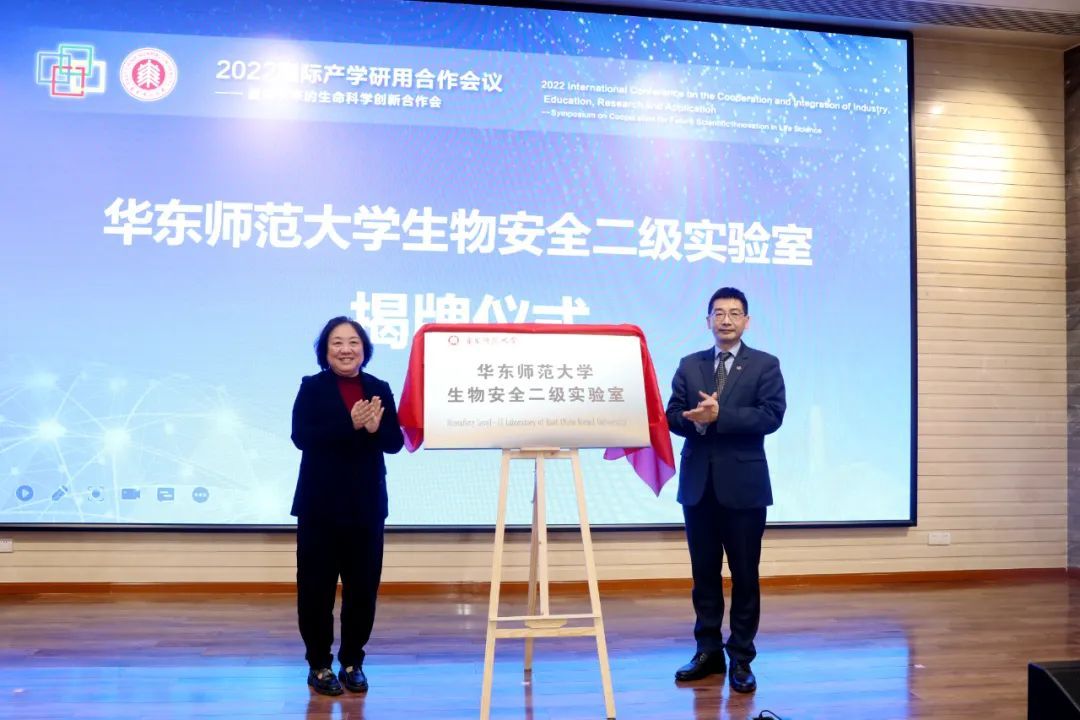 ı 上海市教卫工作党委二级巡视员、市教育工会常务副主席李蔚,华东师大副校长顾红亮共同为华东师大生物安全二级实验室揭牌