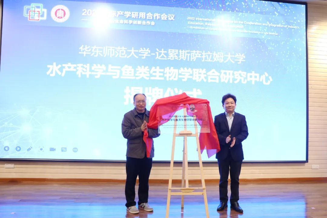 ı 华东师大研究生院副院长兼研究生培养办公室主任杨福义、生命科学学院院长翁杰敏为华东师范大学-达累斯萨拉姆大学水产科学与鱼类生物学联合研究中心揭牌