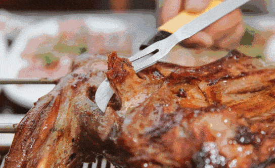 餐厅大厨还提供贴心的分解服务,拿出庖丁解牛的绝技,只需几分钟就把羊轻松拆解,分享食用更方便。