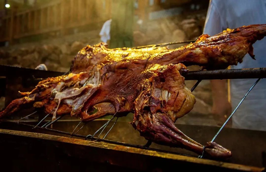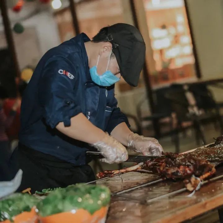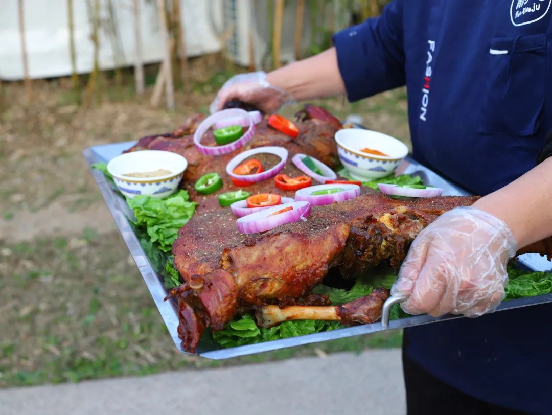 大厨烹饪烤全羊,需要提前用前小桔秘制酱料腌制12小时,果木炭火烤5小时……等羊肉芬香四溢时,刷一层前小桔桔花蜜,让外层变得金黄焦脆,吃到口里更添香味和幸福感。