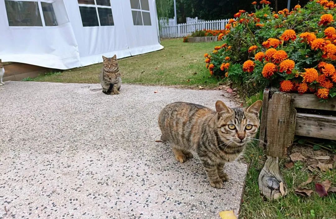 十几只猫咪在桔餐厅、蒙古包、树丛间、草坪上自由撒欢,它们是此地的宠儿,时不时迎来工作人员和游客的驻足逗弄,但并不是每个人都能幸运地撸到猫毛~