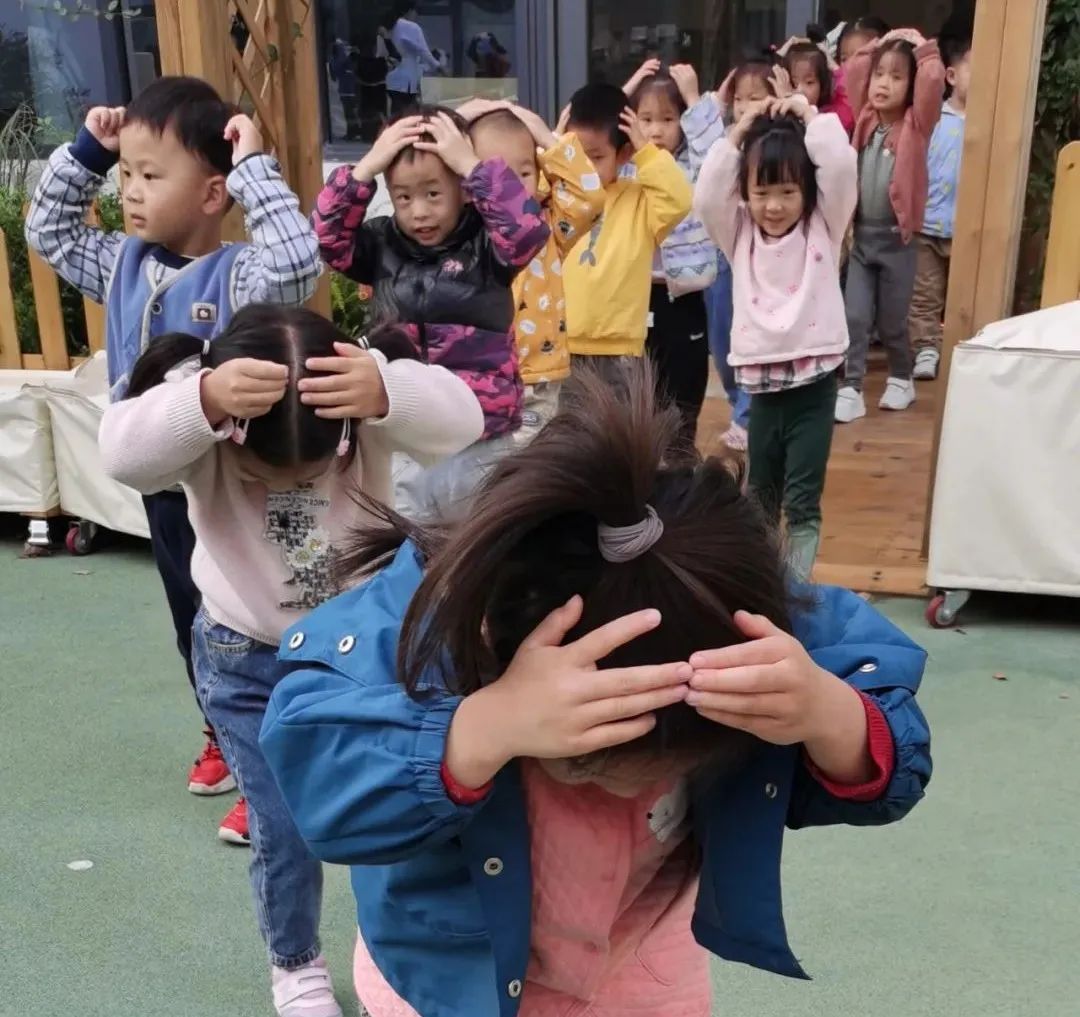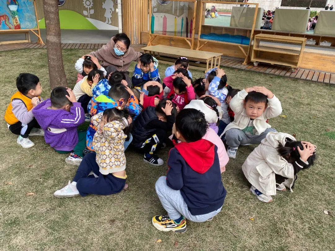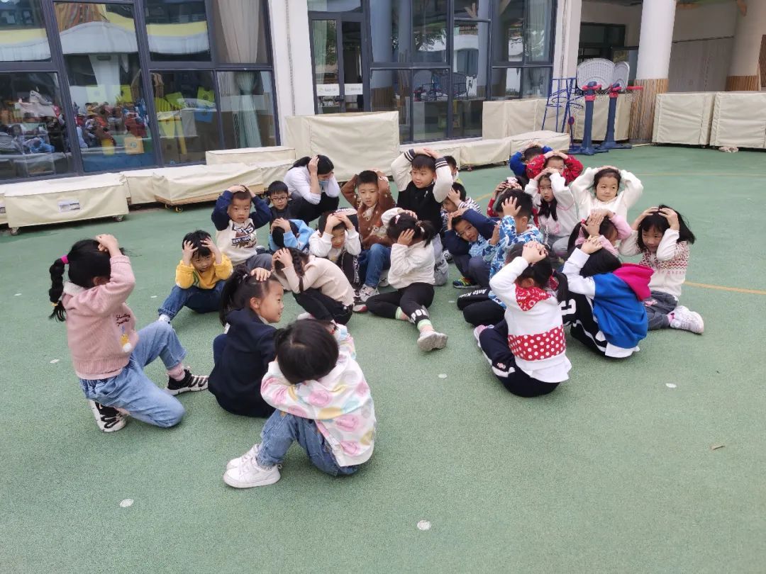全园师幼撤离到安全集合点后,各班老师维持好秩序并清点人数。整个过程快速、安全、有序。