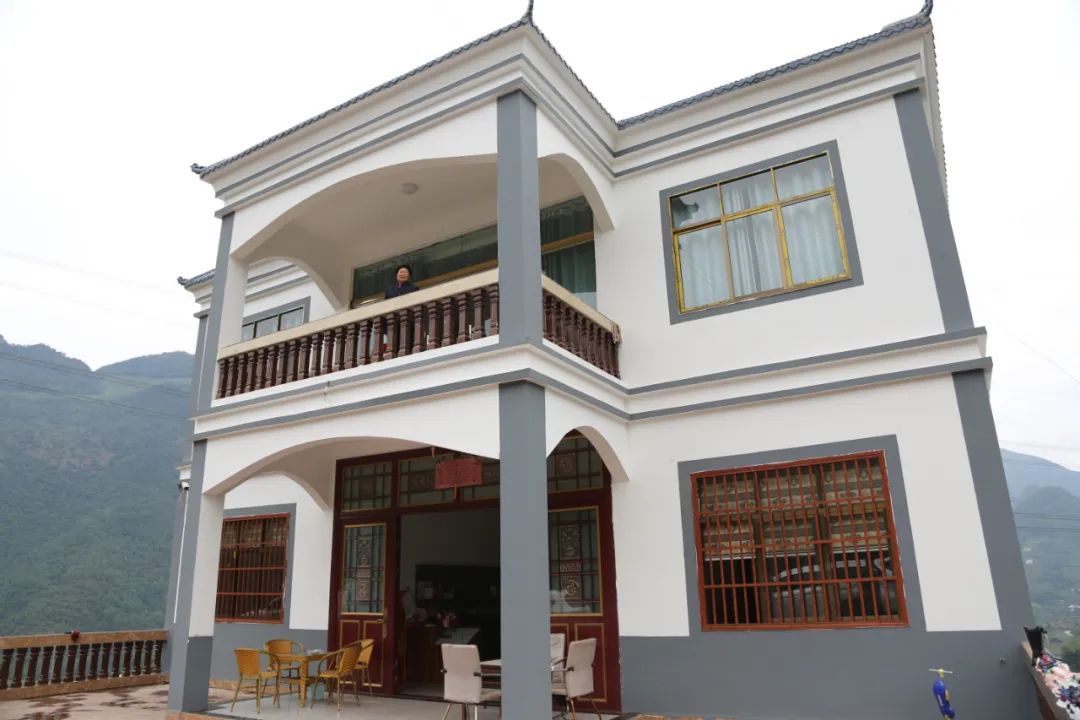 石笋村核桃社村民康龙武的房屋是2008年修建的,建好后外墙一直没有粉刷,山上气候潮湿,外墙已经斑驳发霉,这次粉刷后白墙蓝调让房屋焕然一新。