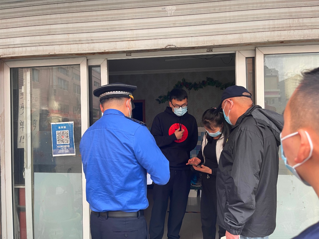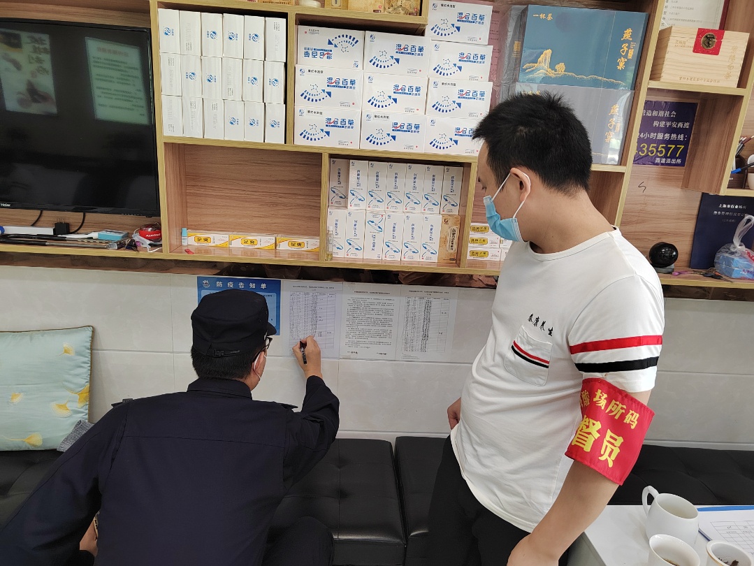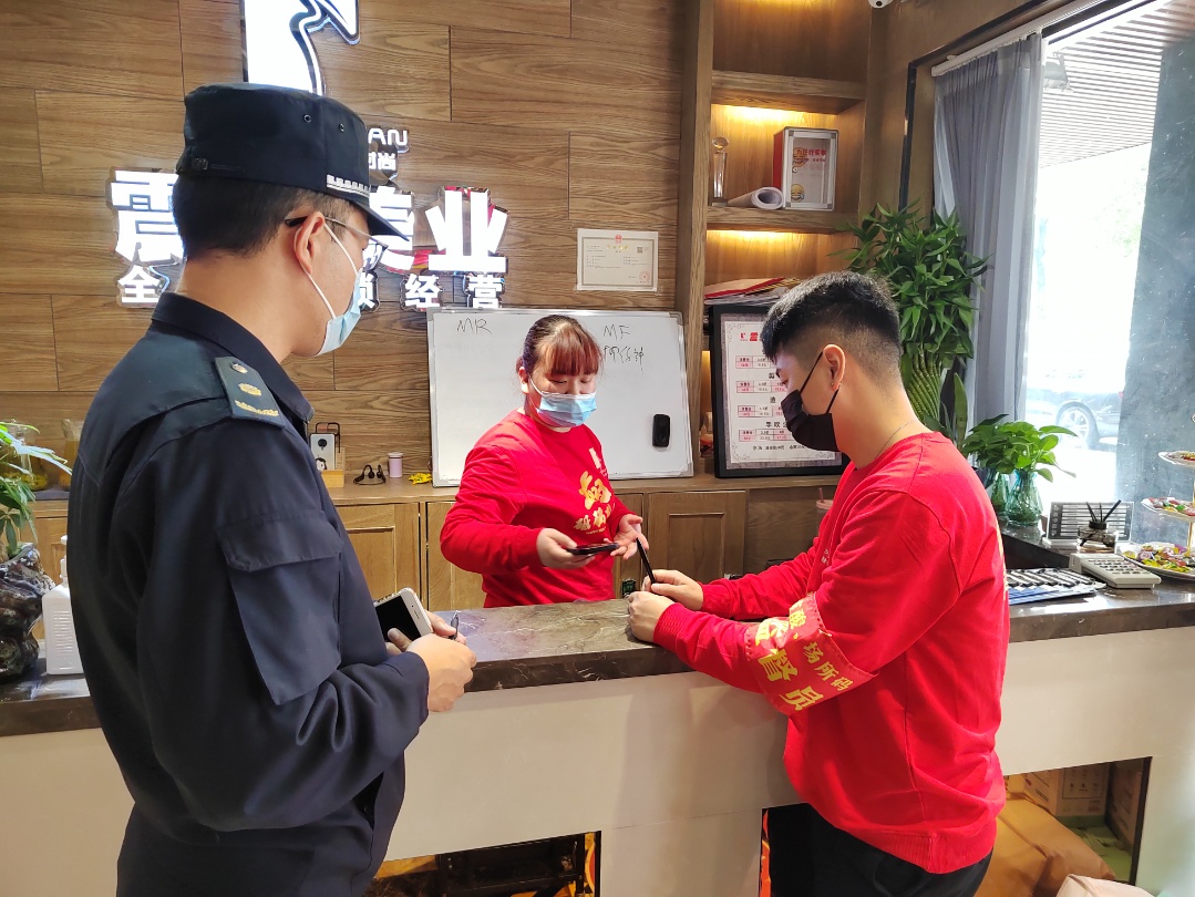 街道营商办对沿街店铺检查:防疫措施是否到位;经营者的核酸记录是否处于48小时之内;商家信息和顾客扫码情况。