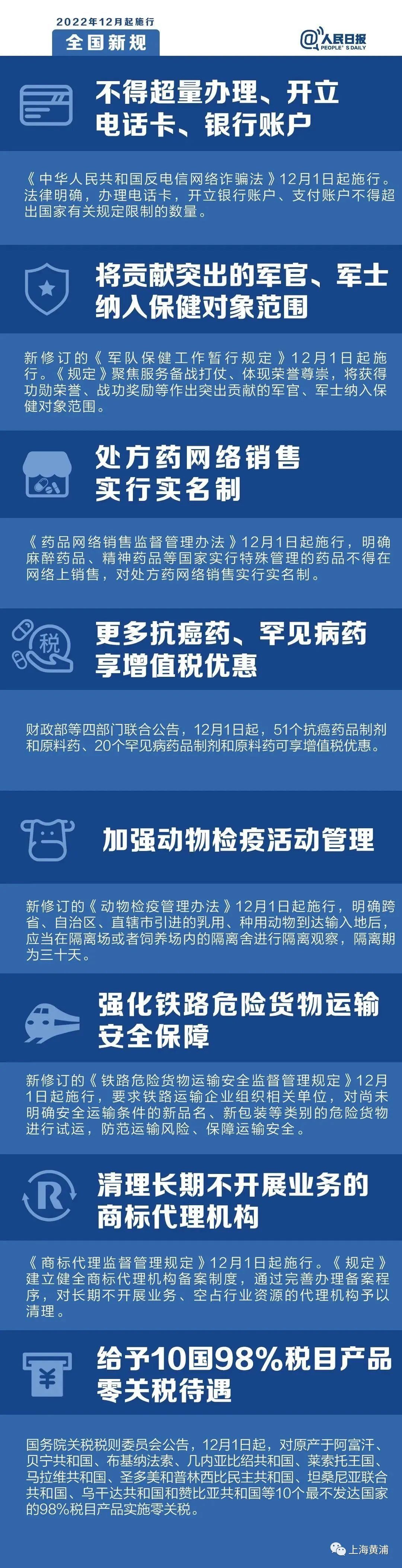 2022年的最后一个月,一批新规开始施行:反电信网络诈骗有了专门立法保障,处方药网络销售实行实名制、商标代理机构监管规定进一步细化……