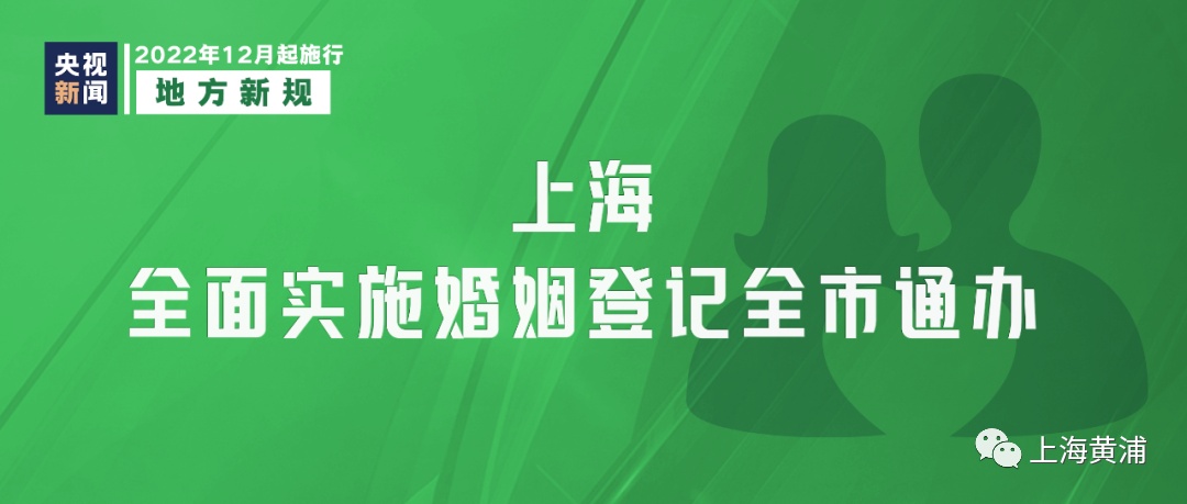 《上海市内地居民婚姻登记全市通办实施方案》12月1日起实施,当事人双方是内地居民,且双方或一方是上海户籍,可以在上海16个区的任一区级婚姻登记机关办理结婚登记或离婚登记。