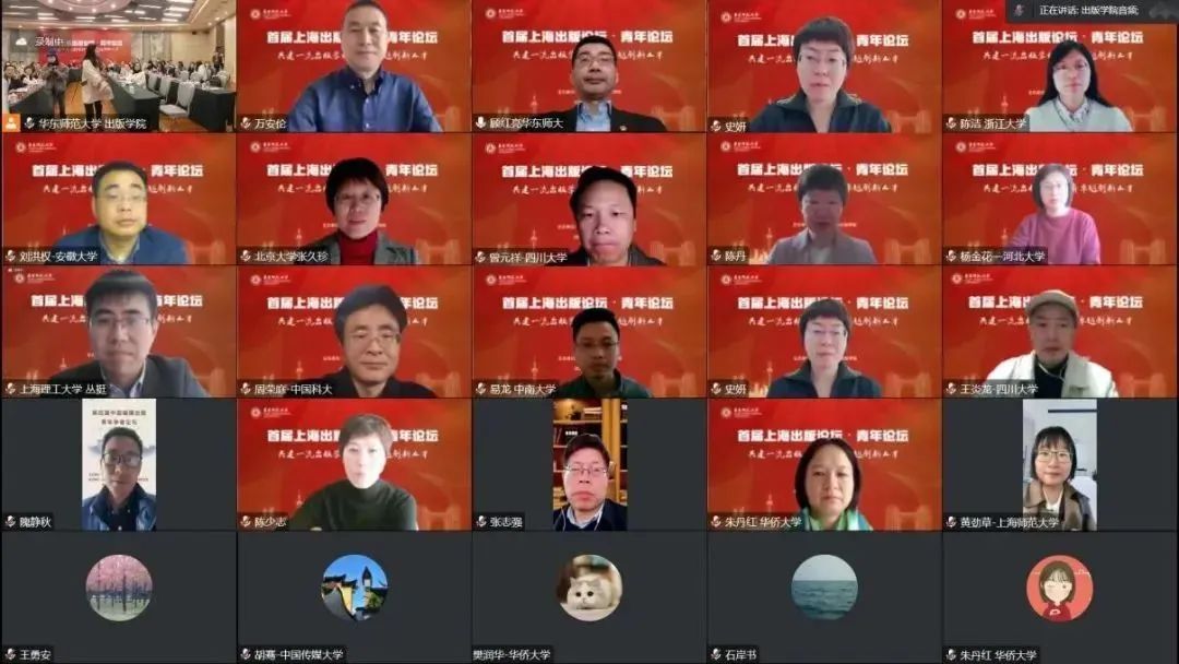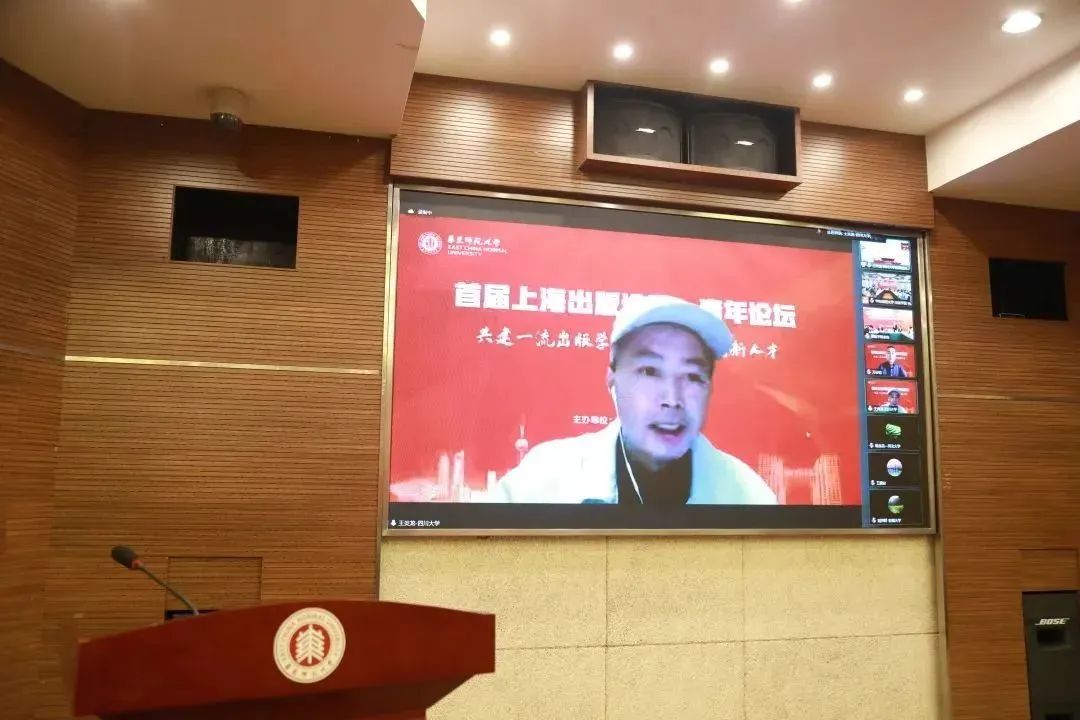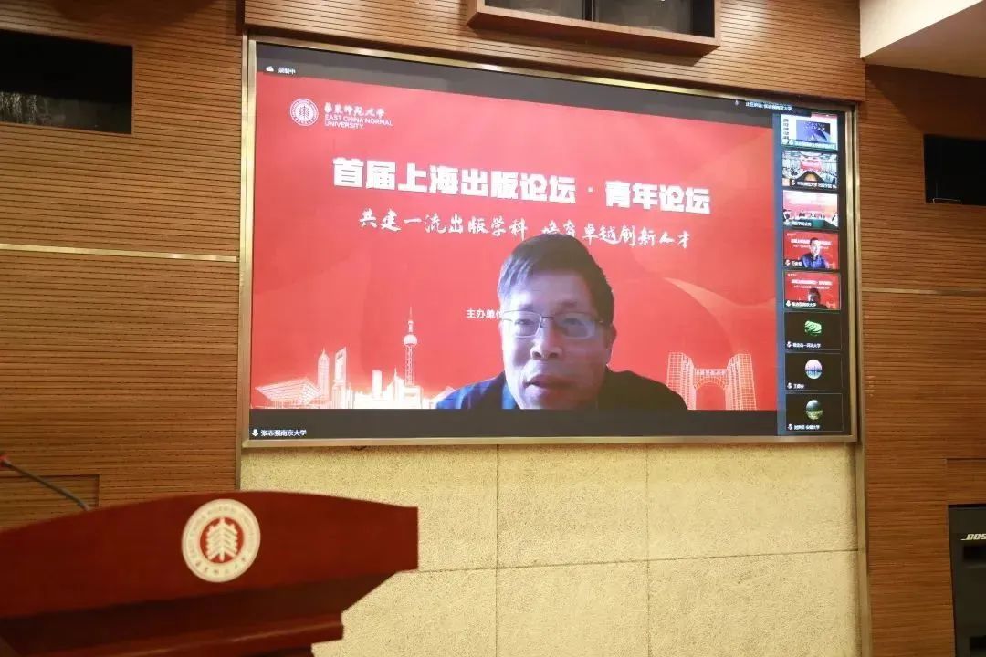 华东师范大学副校长顾红亮、上海世纪出版集团副总裁彭卫国为论坛致辞;五位来自高等院校出版学科的领导和专家依次做主旨报告;来自多家重要出版单位的领导和嘉宾、各高校出版专业的专家学者、华东师范大学出版学院的相关负责人和传播学院相关教师以线上线下相结合的方式参与此次论坛。开幕式及主旨报告环节分别由华东师范大学出版学院党委书记方奇华和华东师范大学出版学院院长王峰主持。