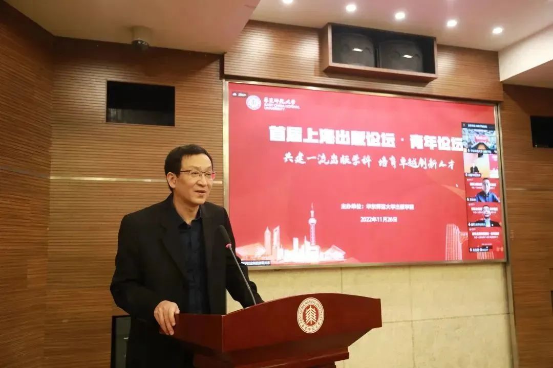 开幕式上,顾红亮副校长以线上方式代表学校向论坛的成功举办表示祝贺并致辞。他指出,上海是中国近现代新闻出版业的发祥地,也是全国出版重镇,是我国最重要的宣传思想阵地之一,而华东师范大学作为新中国成立后的第一所社会主义师范大学,在几代人的接续奋斗下,已经成为学科门类齐全、优势学科突出、人文艺术氛围尤其浓厚的人文社会科学研究的传统重镇。华东师大的编辑出版学专业扎根上海出版业这片肥沃的土壤,依托学校的优势学科,在出版人才培养、出版理论研究和出版智库服务方面取得了不小的成效,在教学和科研工作上取得了长足进展。顾红亮副校长希望,新成立的出版学院应该抓住出版业深刻变革的时代机遇,立足学校八大学科群的优势,通过跨学科、超学科的交叉融合实现超越传统学科框架的新发展和新突破。他表示,未来学校也会举全校之力,支持出版学院建强中国特色出版学科,为我国出版业的高质量发展培养更多卓越出版人才,为筑牢国家宣传思想阵地贡献“师大力量”。