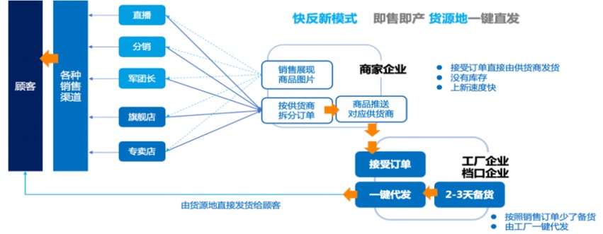 (1)彻底改变原有的供应链模式,决定采用快反新模式,即售即产,货源地一键直发模式,利用聚水潭SaaS ERP协同平台在电商数据智能应用方面的优势,根据恒源祥内衣销售的单量,大胆删减了备货过程,接受订单直接由供货商发货,从货源地直接发货给顾客,企业上新速度至少提前10天。同时进行订单智能分析和处理,加入算法,实现自动识别、自动分析、自动决策、自动适应、自动执行等功能,大幅缩短了交货周期,又避免了商品滞销库存,此外还降低了交货运输成本,让原来的商品货物流向现在的商品数字流转变。