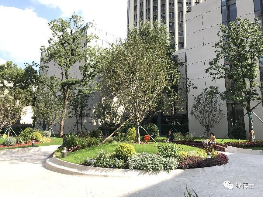 走进绿地,早樱、墨西哥落羽杉、合欢、乌桕、无患子等色叶乔木,搭配亮金女贞球、龟甲冬青球、康乃馨、黄金菊等植物,营造出一片四季有花可赏、四季有景可观的口袋公园。绿地内花境的植物配置因地制宜,力求意境上的独特性和生态上的科学性,凸显彩化效果。