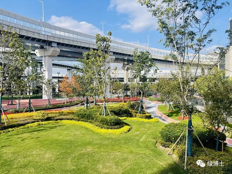 在虹口区汶水东路北侧,今年也新建了一个总面积约3600平方米的口袋公园——汶景园。走进汶景园,阳光透过枝叶洒落下来,常绿树种和色叶树种巧妙组合,营造出上层空间的季节变化;自然流线形的大面积花灌木通透疏朗,营造出中层空间的景观;地面上,种植着彩叶、开花地被,在重要的景观节点还打造了花境,种植时令花卉,增加景观层次。