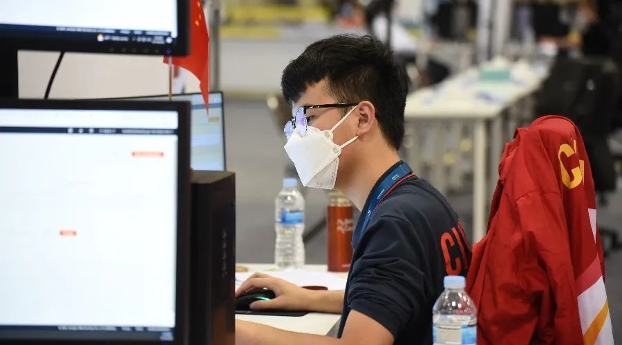 陈新源在2022年世界技能大赛特别赛云计算项目现场进行比赛。