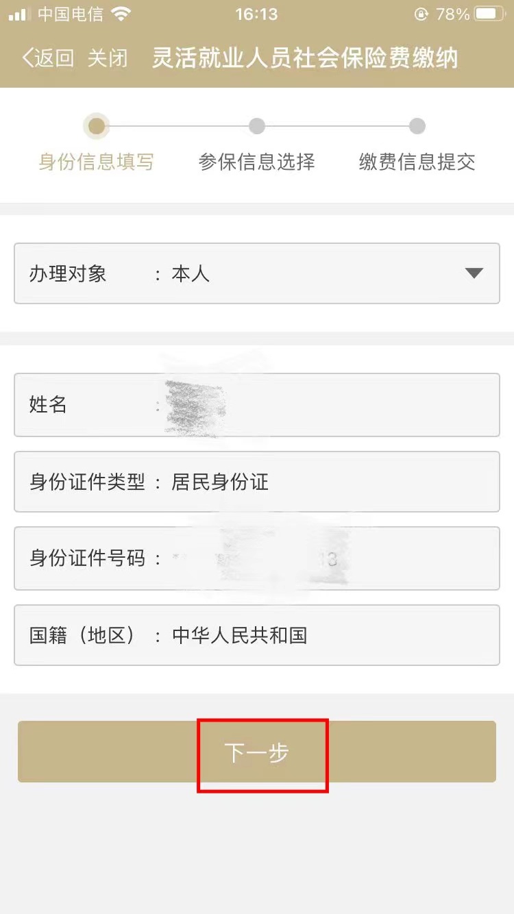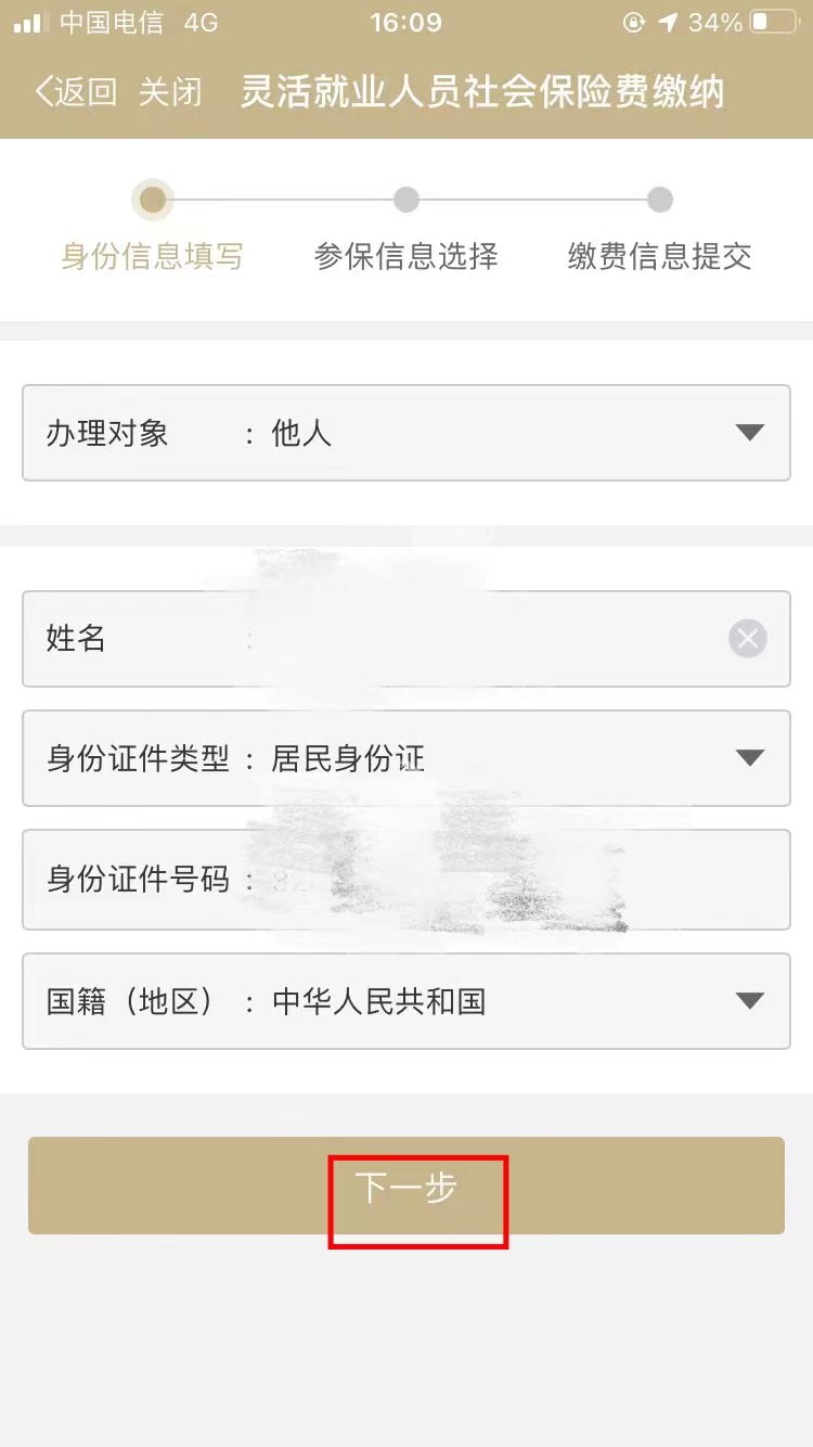默认为本人缴费,若为本人缴费的,直接点击“下一步”;