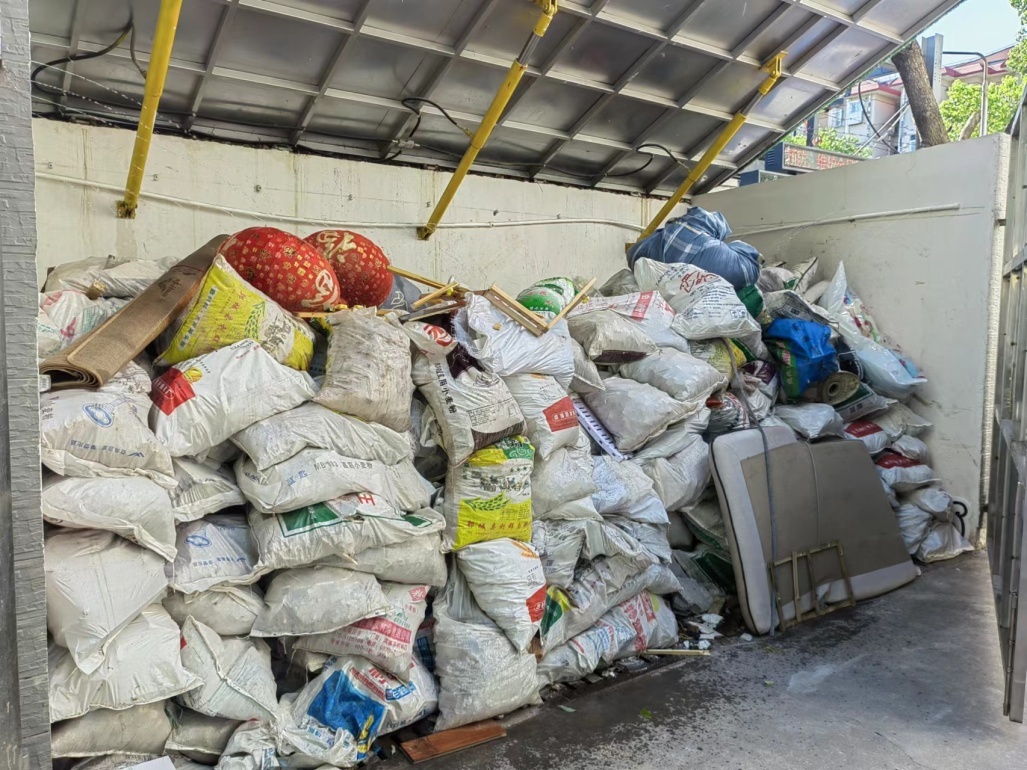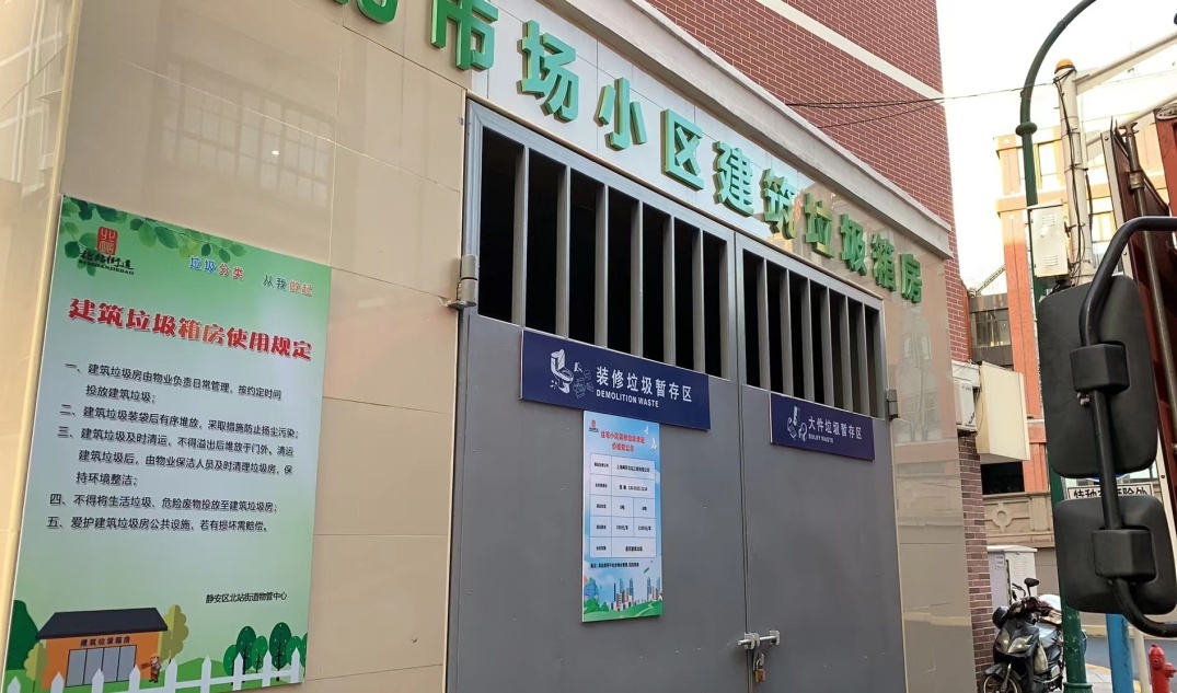 彭浦新村街道对已有的装修垃圾暂存点进行升级改造,对标“有门有墙有顶”标准,通过增加围挡高度,增设可收缩顶棚等,兼顾美观实用,又能避免居民随手将生活垃圾投入。