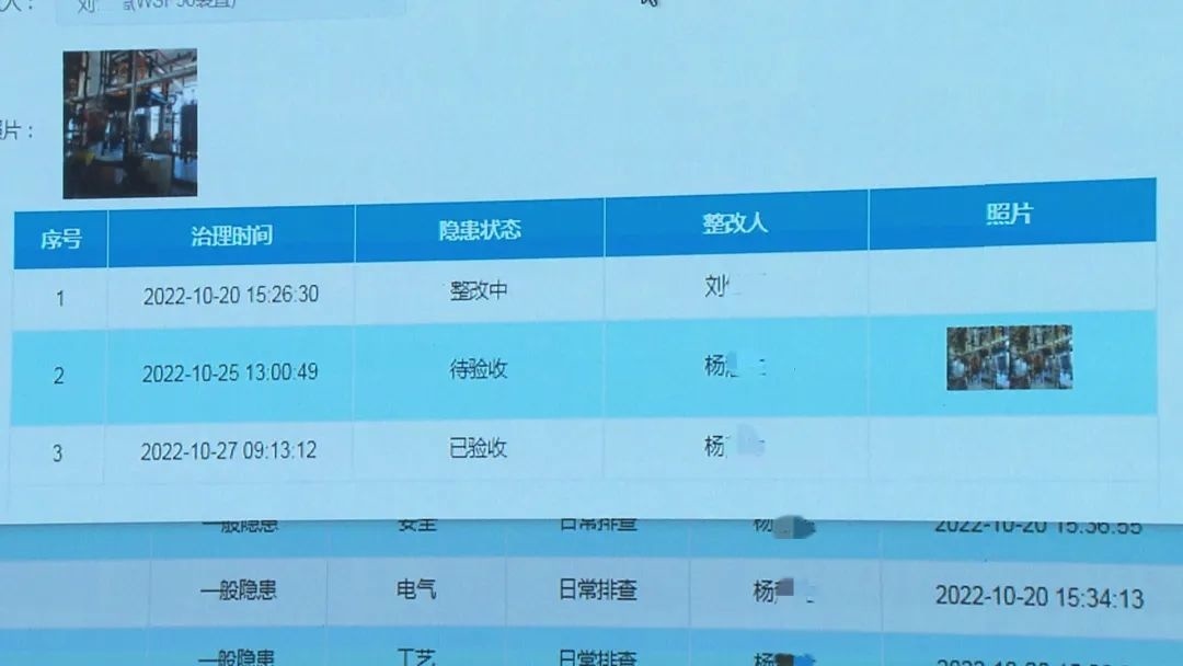 另一边,在上海试四化学品有限公司中控室,大屏幕上的双重预防控制体系内,所有安全隐患排查任务一目了然。上海试四化学品有限公司安环质量部经理祝亮亮表示,员工自学、岗位自查、应急自救能力建设非常重要,而通过加强“三自”能力建设,也能让安全意识渗透到每名员工的日常工作中。