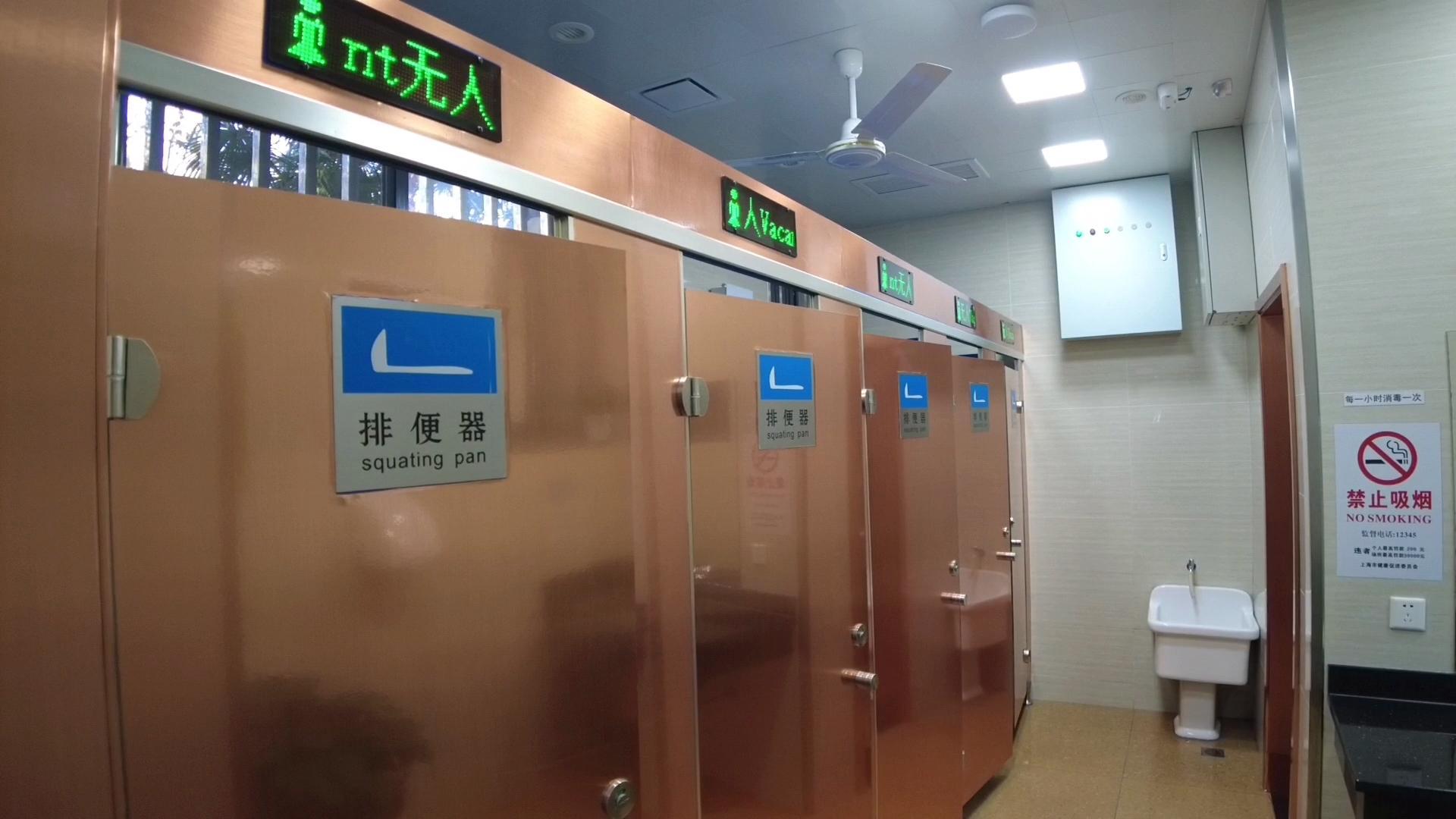 在市中心老城区大林路上,这家公厕,改变了原先公厕设计的局限性,虽然空间大小无法增加女厕位,但可改造成无性别公厕,一下子改善了女性上厕所需排队的老问题。除了一个独立男性小便池区域外,厕位分为10个,电子信号显示,男女可无差别使用。而位于重庆南路上的一处公厕,上个月刚刚评上“最美厕所”,一旁是复兴公园,另一旁是公交站点,这里的厕位配比已经改为男女1比2。