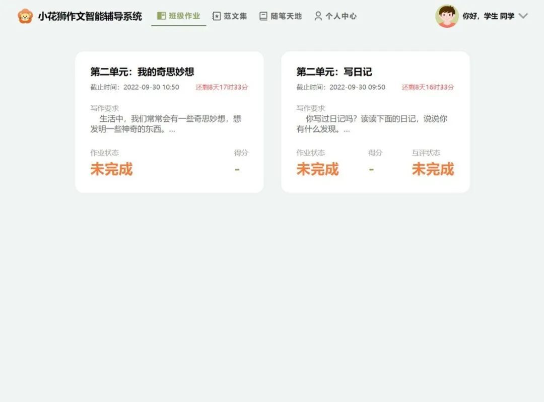 ı “小花狮”作文的学生端班级作业