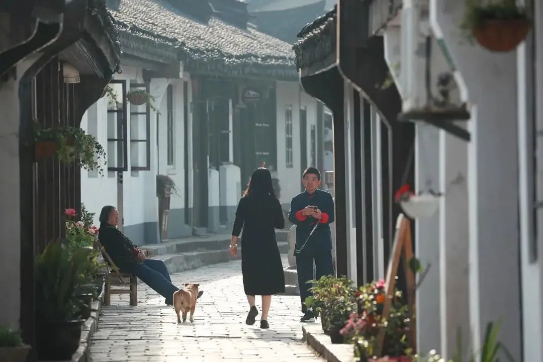 在老街上漫步,古镇的铺子比邻而立,翻新的到家民宿留住了当年的风韵。随意寻一处河埠,沿阶而下,品味着旧时的海棠糕,领略老街的水文化。
