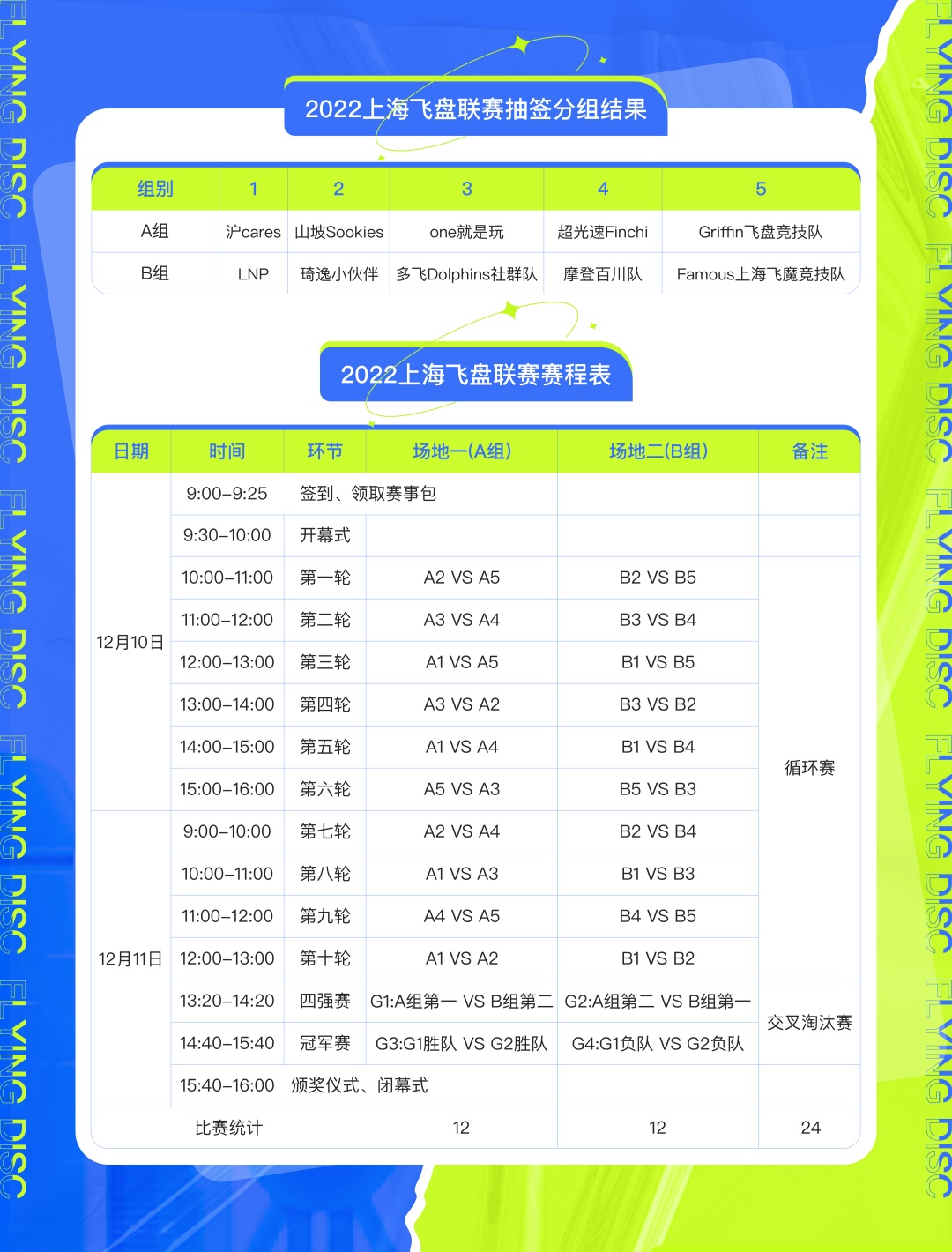 参赛队伍:超光速Finchi、山坡Sookies、多飞Dolphins社群队、Griffin飞盘竞技队、摩登百川飞盘队、LNP飞盘队、Famous上海飞魔竞技队、琦逸小伙伴、沪cares飞盘队、one就是玩。