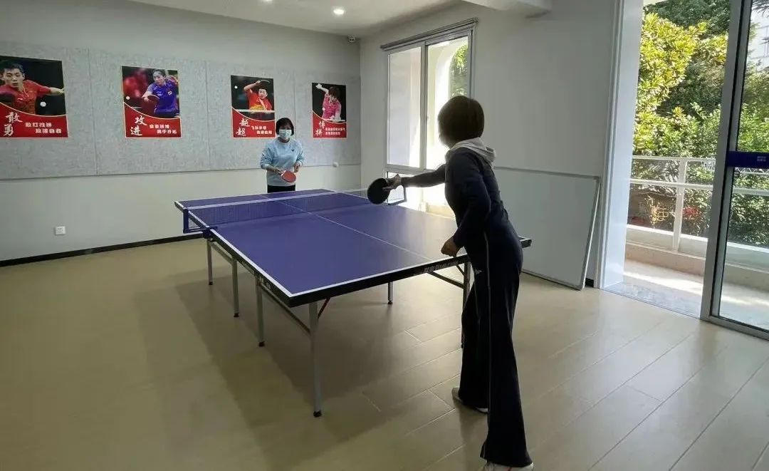 一楼综合文化活动室宽敞明亮,孩子们在一旁嬉笑打闹,老人围坐在桌子边看报喝茶,酷似家中的会客厅。来了兴致,还可以上二楼的乒乓室“杀一局”,或是到隔壁的多功能舞蹈房跳跳舞、练练瑜伽伸展一下筋骨。