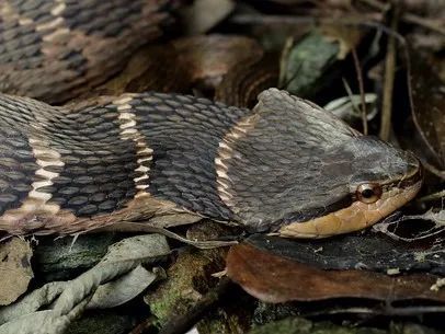 此外,蝰蛇科下国内知名度很高的尖吻蝮(俗名五步蛇)、福建竹叶青也是很典型的三角头。