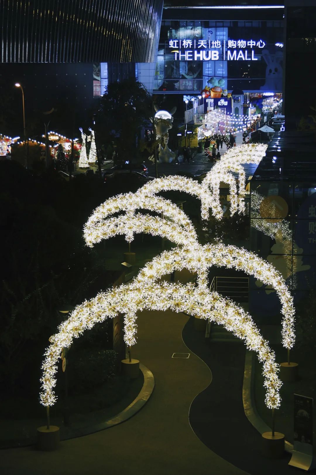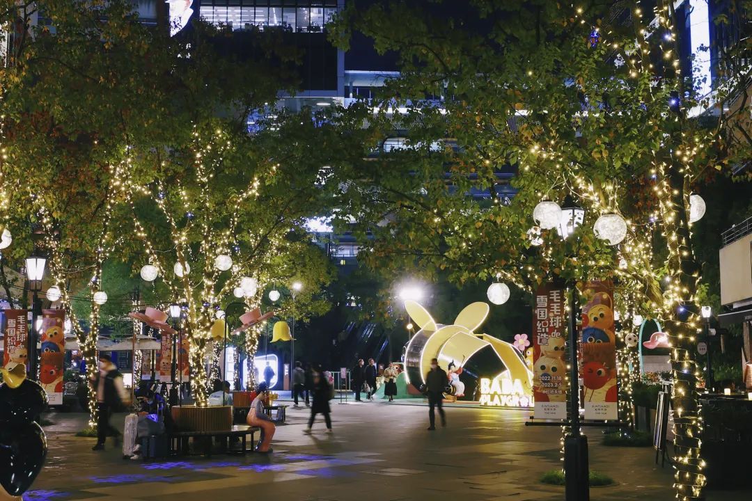 今年的光影市集在木屋规模、装置造景、多元活动上进一步突破,联动购物中心、四通街、八达街、新天地街区多个地块,将虹桥天地南区北区整体打造,营造一步一景的冬季奇景。尤其是在一路之隔的中央公园,还设有灯光作品“光之路”,走在宁静的公园小路上,树影与灯影交织,别有一番意境。