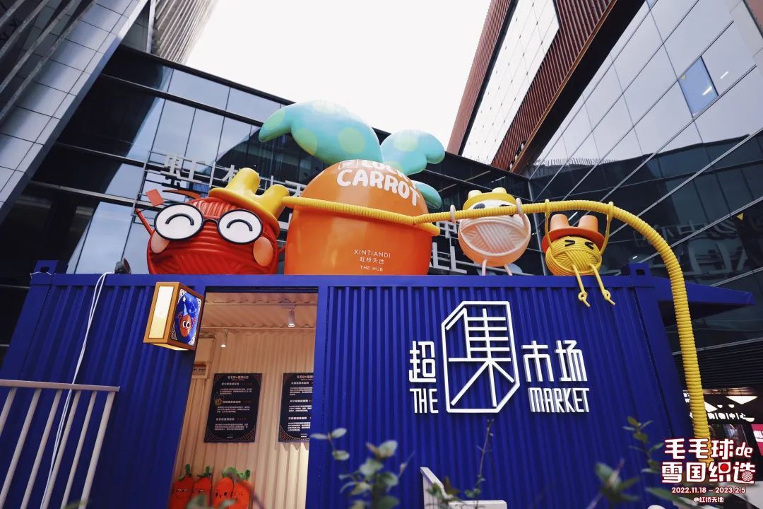 户外长廊的“超集市场”是虹桥天地长期设置集装箱市集主题街区,在集装箱市集内打造独立品牌空间,形成一个小的商圈。